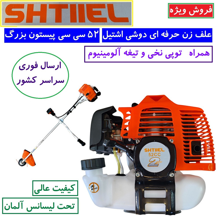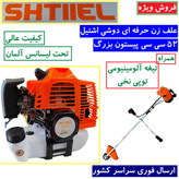 علف زن (علفتراش) دوشی ۲ زمانه طرح اشتیل 52CC پیستون بزرگ با توپی نخی و تیغه آلومینیوم همراه لوازم جانبی کامل