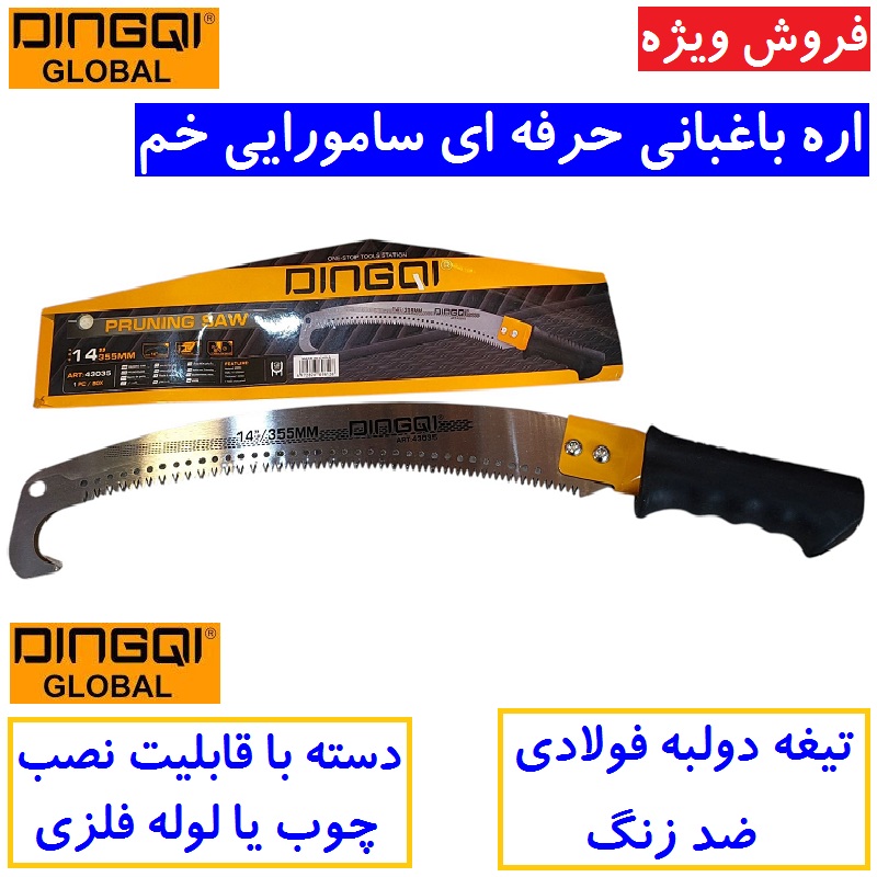 اره باغبانی خم 36 سانتی دینگشی مدل 43035 تیغه فولاد ضد زنگ دو لبه (دسته قابلیت نصب واسط جهت بلند شدن دارد)