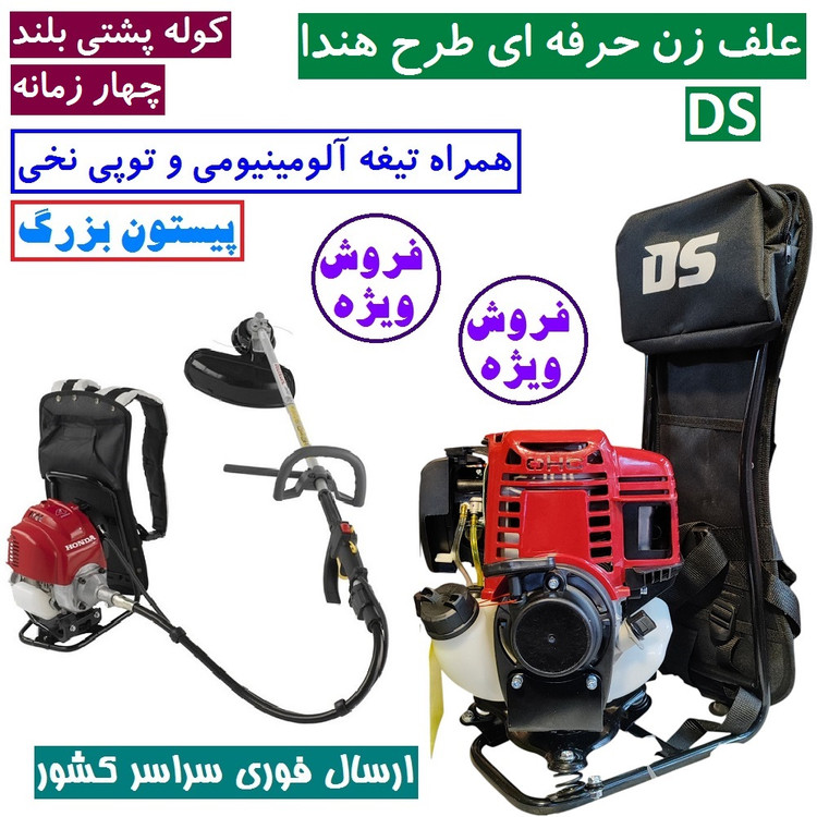 علف زن پشتی طرح هندا DS چهارزمانه مدل 35 علفزن طرح هوندا DS با توپی نخی تیغه آلومینیومی با لوازم جانبی (پس کرایه)