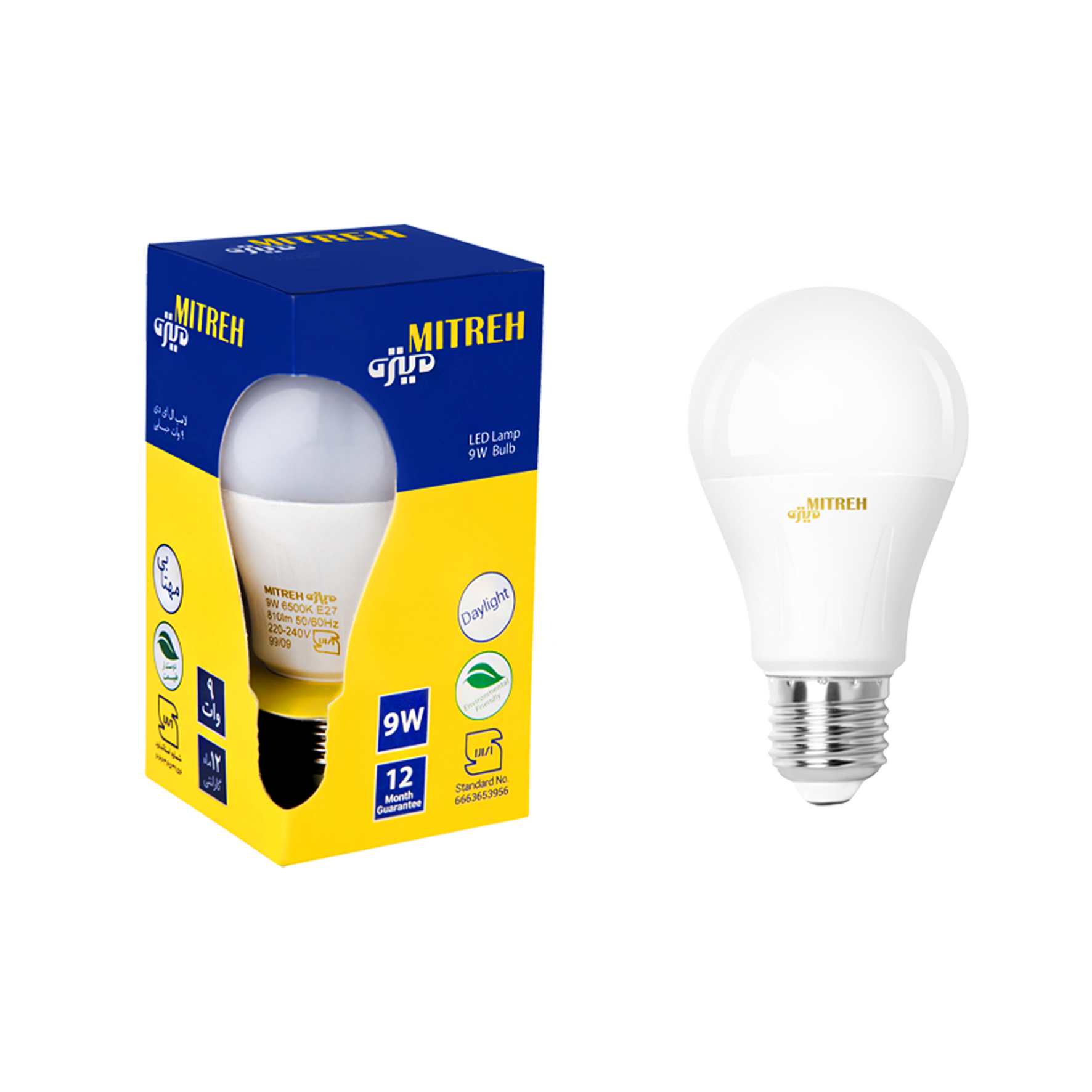 لامپ 9 وات حبابی میتره با زاویه تابش 180 درجه با راندمان بالا و صرفهجویی در انرژی بدون جیوه و سرب