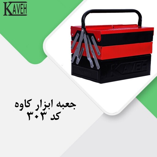 جعبه ابزار فلزی اتوماتیک کاوه رنگ کوره ای ضد خش مدل 303 ابعاد 3 طبقه 30 سانت ورق ضخیم بسته بندی شرکتی