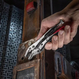 فکها و دندانههای این انبرقفلی بهصورت سختکاریشده طراحی شدهاند تا قطعهکار را محکم و بدون لغزش نگه دارند. همچنین طراحی ارگونومیک بدنه و دستهها باعث میشود کار با آن راحتتر باشد و دست کاربر کمتر خسته شود. سیستم قفلکن ماشهای نیز به کاربر کمک میکند تا قطعهکار را با قدرت بیشتری در جای خود فیکس کند.