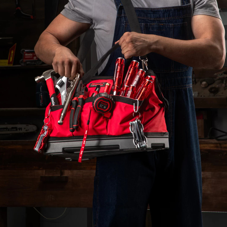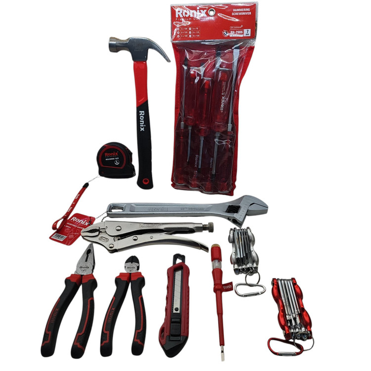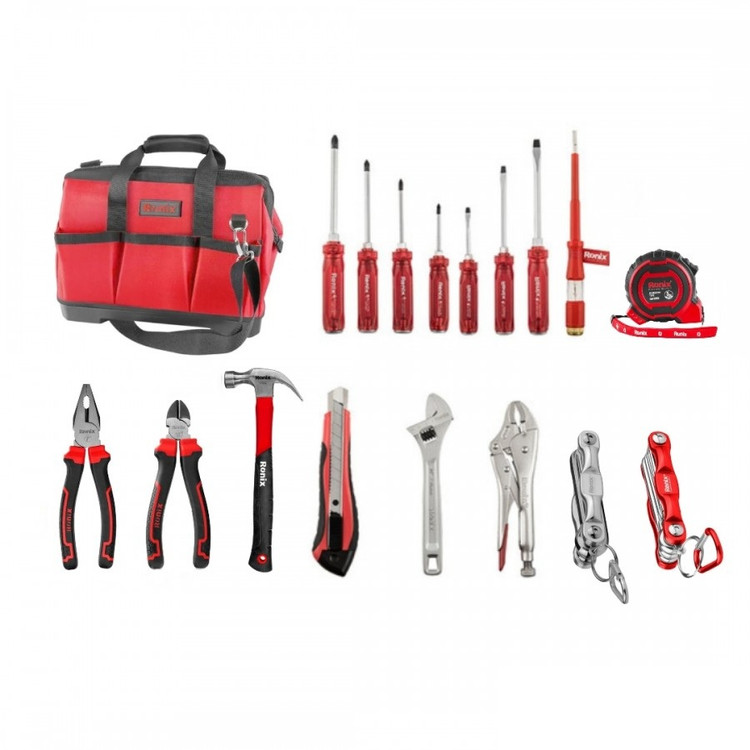 ویژگی ها: - دارای کیف ابزار جادار بزرگ و مقاوم دربرابر سایش -حاوی ابزارهای با کیفیت وکاربردی در اندازه های مختلف. - شامل 11 عدد از ابزار کاربردی و صنعتی -دارای بند رودوشی به منظور حمل و جا به جایی آسان - جمع آوری آسان کلیه ابزارها در یک مجموعه و قابلیت سازماندهی آسان آن ها توضیحات در خانه و کارگاه برای نگهداری از ابزارهای مختلف به کیف یا جعبه ابزار نیاز پیدا میکنید. ضرورت استفاده از کیف ابزار، زمانی پررنگتر میشود که لازم باشد آن را در مکانهای مختلف جابهجا کنید. حالا فرض کنید که یک برند معتبر، کیف ابزار کاملی را به همراه تمام ابزارها و متعلقات کاربردی به شما عرضه میکند؛ ابزارهایی با کیفیت و دوام بالا که تمام نیازهای شما را پوشش میدهند. بله درست است! رونیکس کیف ابزار RH-9101 خود را همراه با تمام متعلقاتی که دستِ کم برای کارهای فنی عمومیتر به آنها نیاز دارید، طراحی و تولید کرده است. این کیف ابزار، از پارچه آکسفوردی باکیفیت تولید شده است و مقاومت بالایی به سایش دارد. برای آشنایی بیشتر با کیف ابزار RH-9101 رونیکس همراه با متعلقات، بخش شرح جزئیات محصول راهنمای خوبی برای شما است. مشخصات کیف ابزار 16 اینچ متعلقات آچار فرانسه سری لیبرا 12”، انبر قفلی دینامیک 10”، انبر دست مکسی 7"، سیم چین مکسی 6"، کاتر 18*0.5mm، چکش 250 گرمی 250g، فاز متر 180mm ، پیچ گوشتی ضربه ای 7 تایی Philip : 1*75,2*100,2*125,3*150 Slot: 5*75, 6*125, 80*150، متر 5M*25mm، آچار آلن فانتزی 1.5mm, 2mm, 2.5mm, 3mm, 4mm, ، ، آلن فانتزی ستاره ایT9, T10, T15, T20, T25, T27, T30, T40، 5mm, 6mm, 8mm