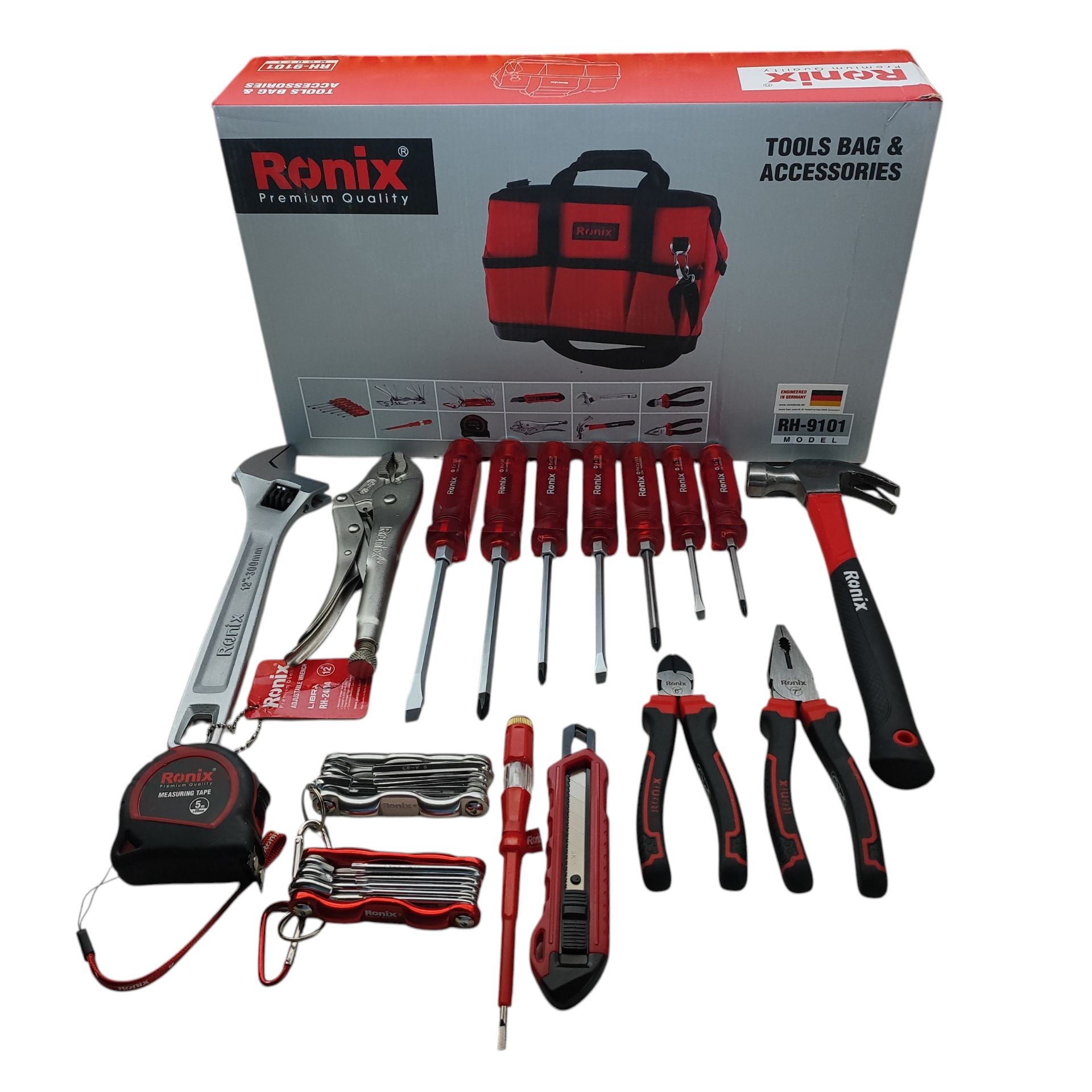 کیف ابزار 18 پارچه کامل رونیکس مدلRH-9101 دقیقا مطابق تصاویر کیت ابزار همراه با متعلقات رونیکس مدل 9101