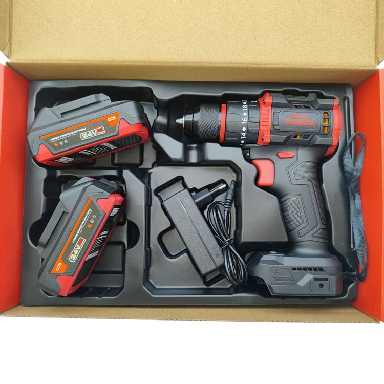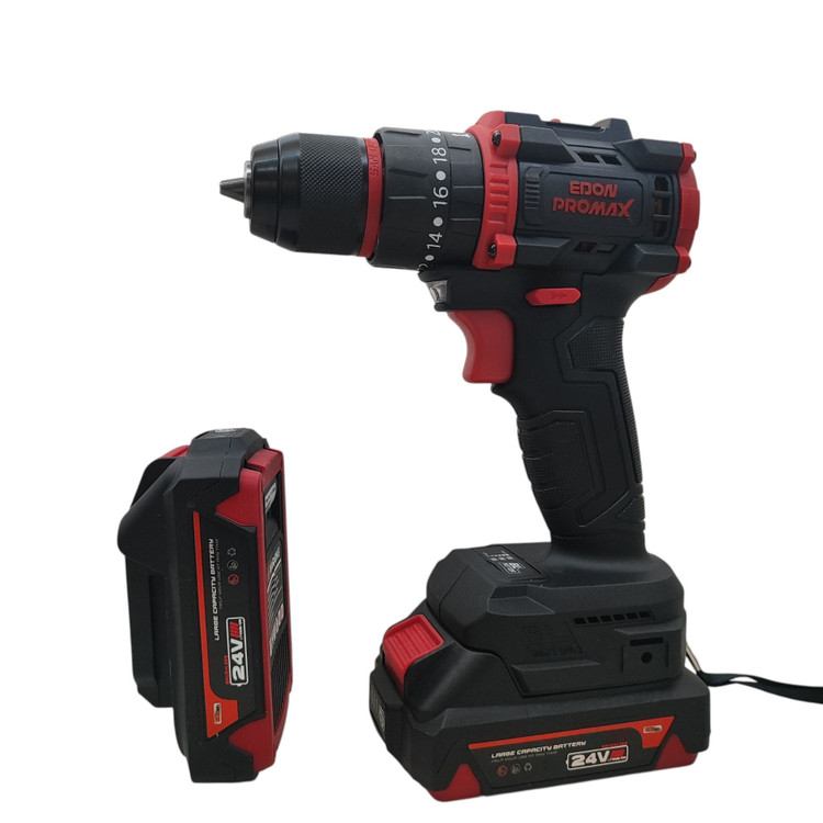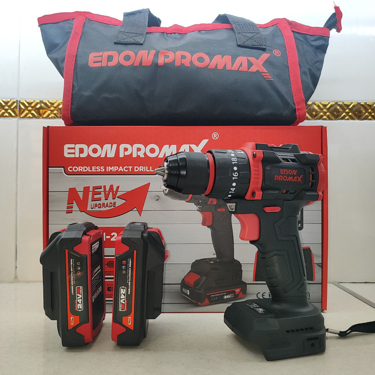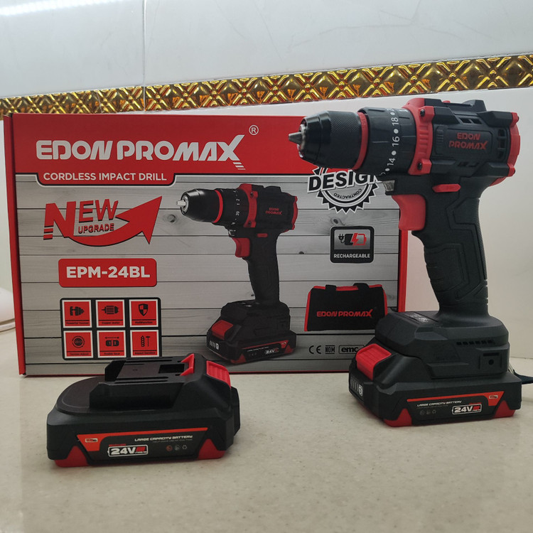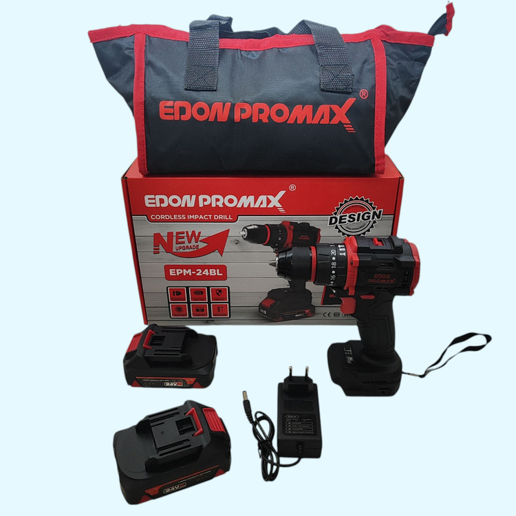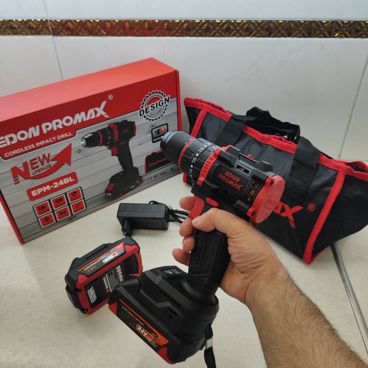 دریل شارژی چکشی صنعتی ادون پرومکس 24 ولت دو باتری مدل EMP-24BL همراه کیف مطابق تصاویر بسیار پرقدرت و عالی