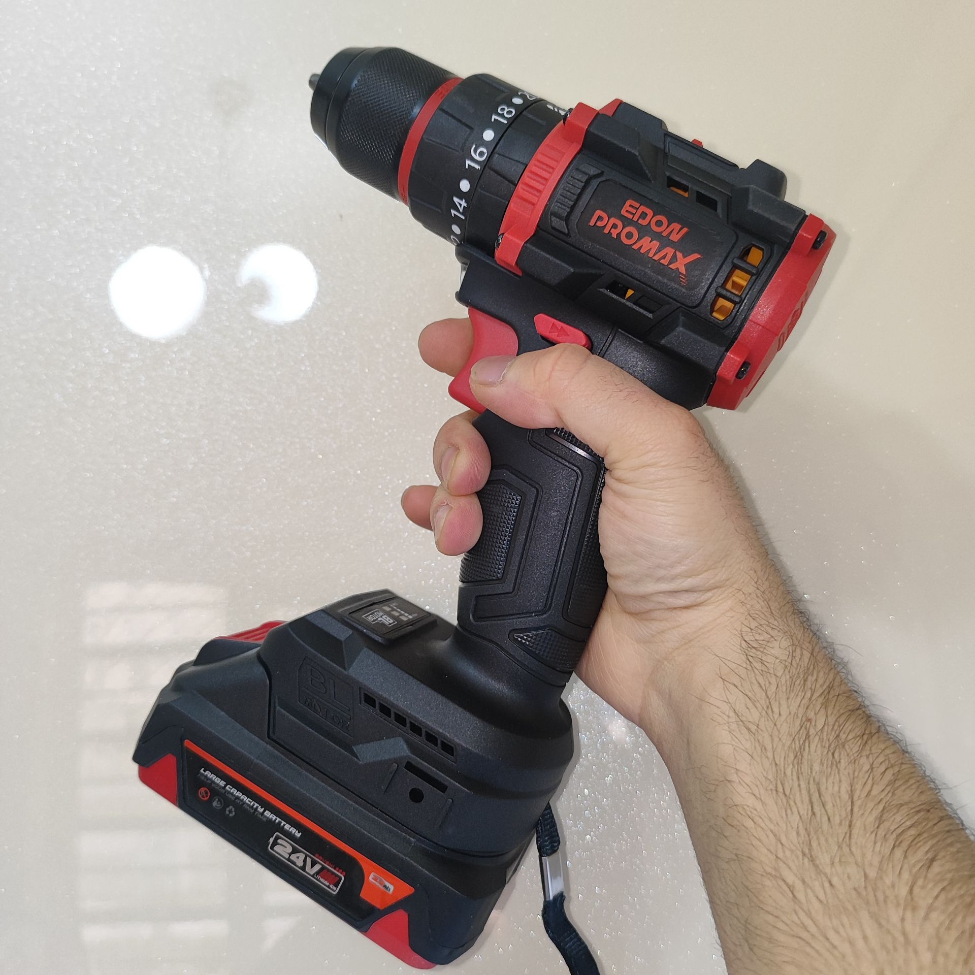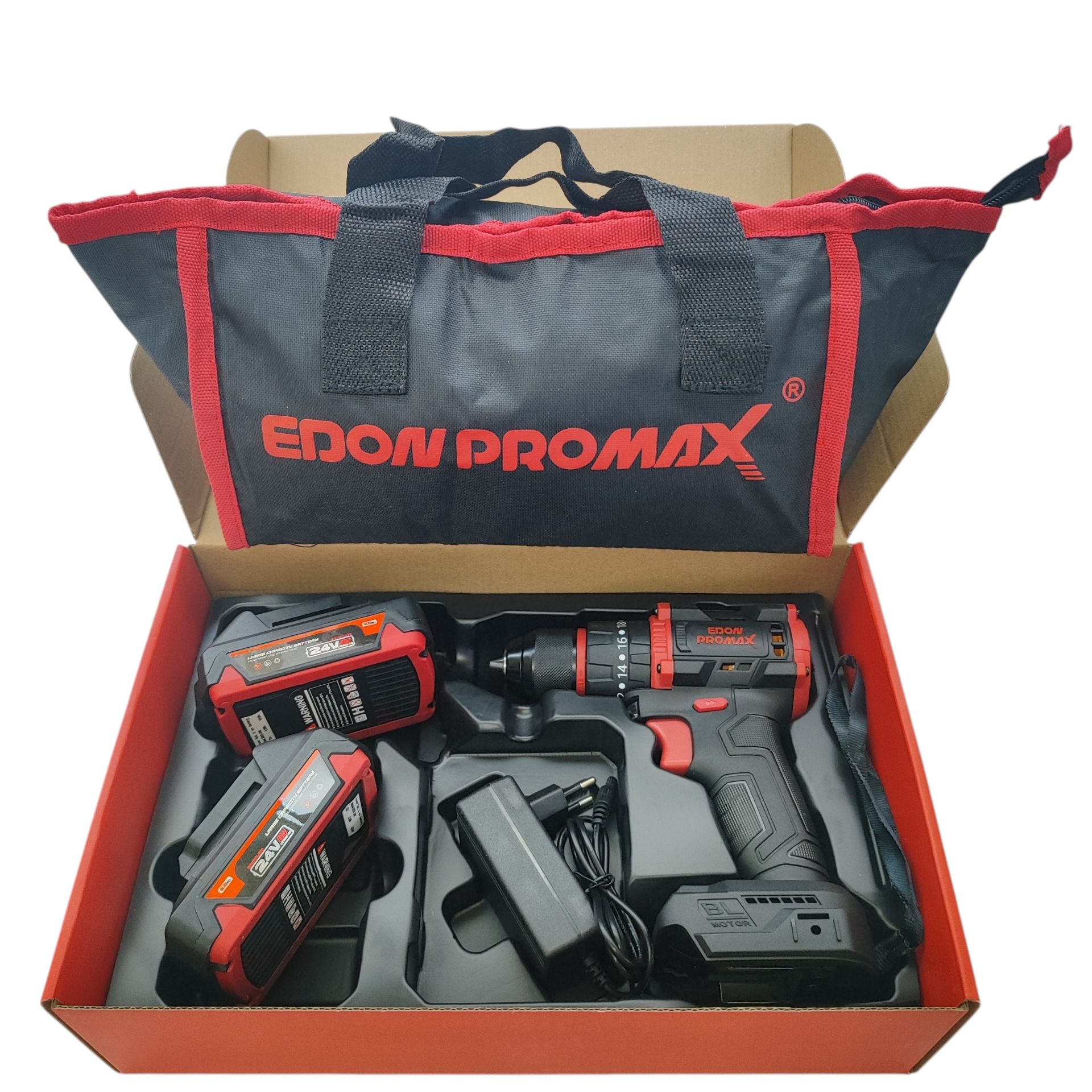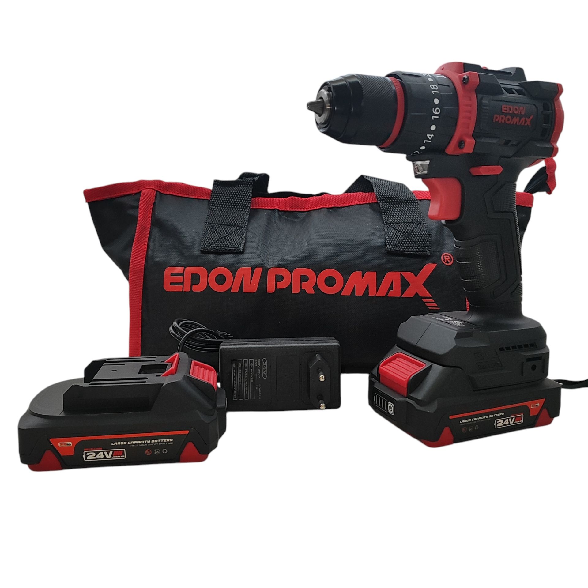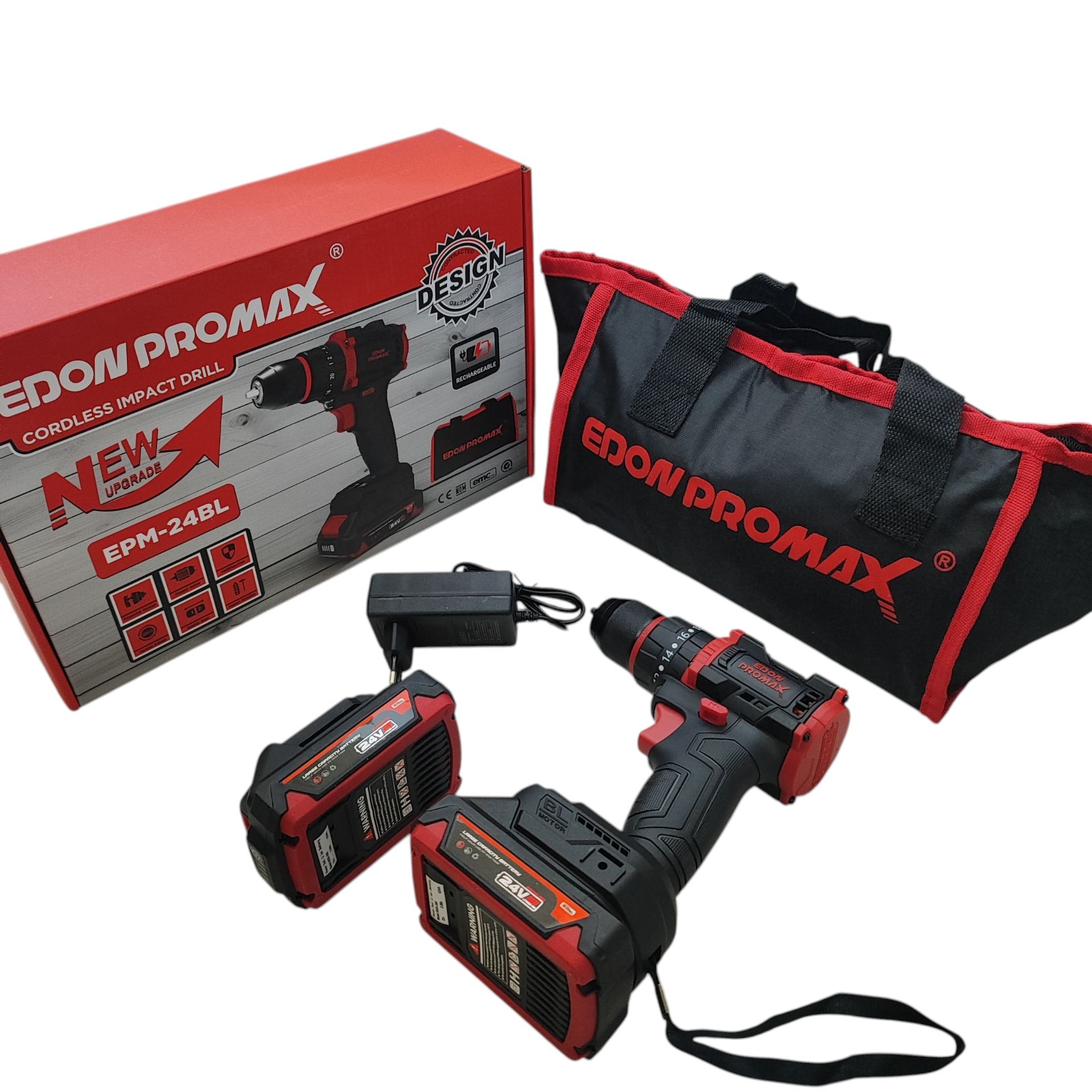 دریل شارژی چکشی صنعتی ادون پرومکس 24 ولت دو باتری مدل EMP-24BL همراه کیف مطابق تصاویر بسیار پرقدرت و عالی