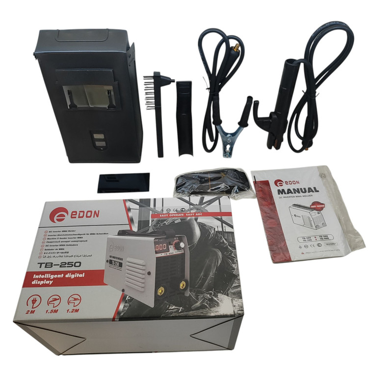 وزن 3.5 کیلوگرم ولتاژ ورودی 220 ولت حداکثر شدت جریان خروجی 250 آمپر نوع سیستم جوش قوس الکتریکی SMAW تغذیه ورودی تک فاز کشور سازنده چین دستگاه جوش اینورتر دیجیتال ادون TB-250 کیفیت بسیار بالایی در جوشکاری الکترود سایز 1.6-3 میلیمتر دارد. این ابزار جوشکاری تک فاز بوده و حداکثر شدت جریان خروجی آن برابر با 250 آمپر می باشد. این دستگاه قابل استفاده با برق شهری 220 ولت بوده و به همین دلیل برای کاربری های سبک و خانگی بهترین گزینه می باشد. وزن و حجم کم این دستگاه سهولت در حمل و جا به جایی را برای کاربر فراهم آورده است. این دستگاه در حین کار آلودگی صوتی ایجاد نکرده و مناسب جوش کاری الکترودهای اسیدی می باشد. این دستگاه از نوع اینورتر بوده و مصرف برق بسیار پایینی دارد و به همین دلیل طرفداران زیادی دارد. مجهز به صفحه نمایشگر دیجیتال بوده و با استفاده از آن می توان شدت جریان خروجی را مشاهده کرد. اینورتر دیجیتال TB-250 ادون به صورت تک ولوم طراحی شده و با استفاده از آن می توان شدت جریان خروجی را تنظیم کرد. در ضمن چرخه عملکرد این دستگاه جوش 60% می باشد. این محصول ساخت کشور چین بوده و بدون گارانتی است اما لوازم یدکی آن در بازار با ارزان ترین قیمت یافت می شود و به راحتی میتوان در صورت بروز مشکل فنی برا یدستگاه مذکور آن را تعمیر نمود. لازم به ذکر است که به همراه دستگاه لوازم جانبی زیر نیز عرضه می گردد: کابل جوش انبر جوش کابل اتصال انبر اتصال فرچه چکش ماسک جوشکاری اینورتر جوشکاری دیجیتال 250 آمپر ادون TB-250 وزن و حجم کم از نوع دیجیتال و تک فاز به همراه لوازم جانبی از نوع اینورتر و کم مصرف
