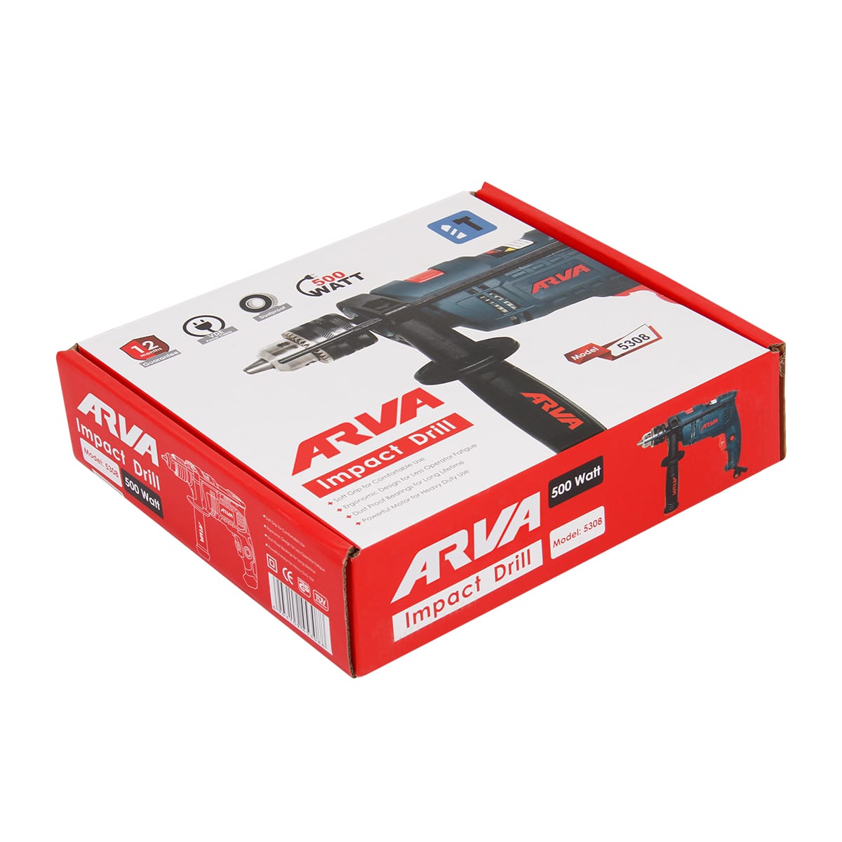 دریل چکشی ۵۰۰ وات آروا ۱۳ میلیمتری آچاری مدل ۵۳۰۸ با کارت گارانتی اروا