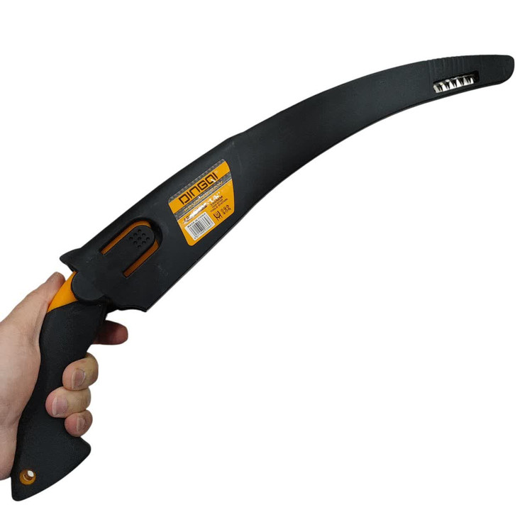 اره باغبانی دستی دینگی مدل DINGQI 43007 غلاف دار یکی از انواع اره باغبانی و هرس دستی با تیغه ۳۵ سانتی طول کامل ۵۱ سانتی و قابلیت برش تر و خشک می باشد. اره دستی دینگی ۳۵ سانتی دارای یک تیغه ثابت از جنس استیل، خوش دست و بسیار سبک می باشد.