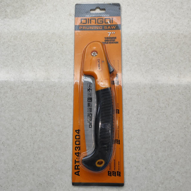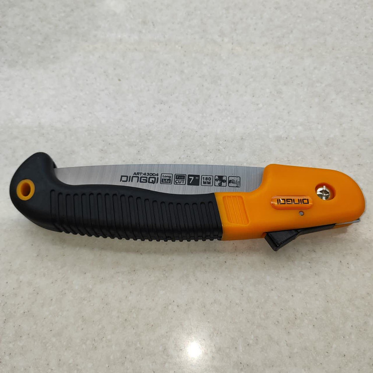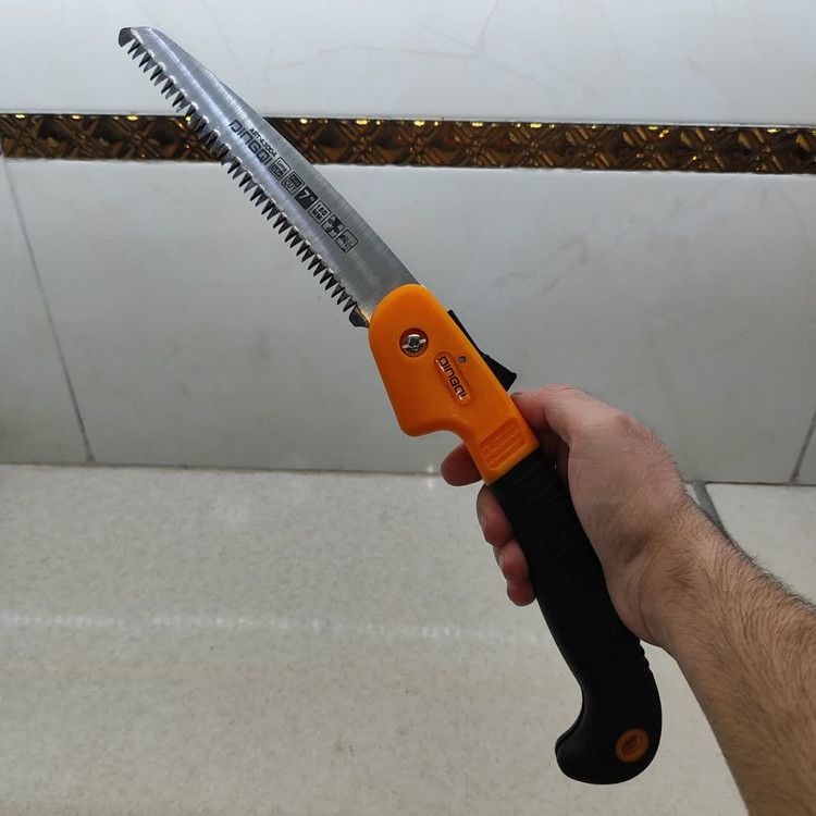 اره باغبانی تاشو حرفه ای دینگشی ، تولید شده از فولاد کربن بالا 55 ، دارای تیغه های 2 طرفه حرارت دیده شده و بسیار تیز و برنده با برش بسیار قوی ، دارای قفل ایمنی قوی ، محافظ دست در هنگام بسته شدن دارای دسته ی ارگونومیک نرم ، ضد تعریق و ضد لغزش ، دارای دوام و طول عمر بالا مخصوص برش چوب ، پلاستیک و سایر موارد ... بسیار زیبا و خوش دست می باشد . تیغه به طول 18 سانتی متر و دسته به طول 22 سانتی متر است . طول کل اره در حالت باز : 40 سانتی متر است . ساخت کشور : P.R.C