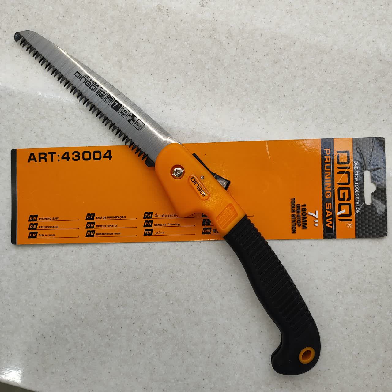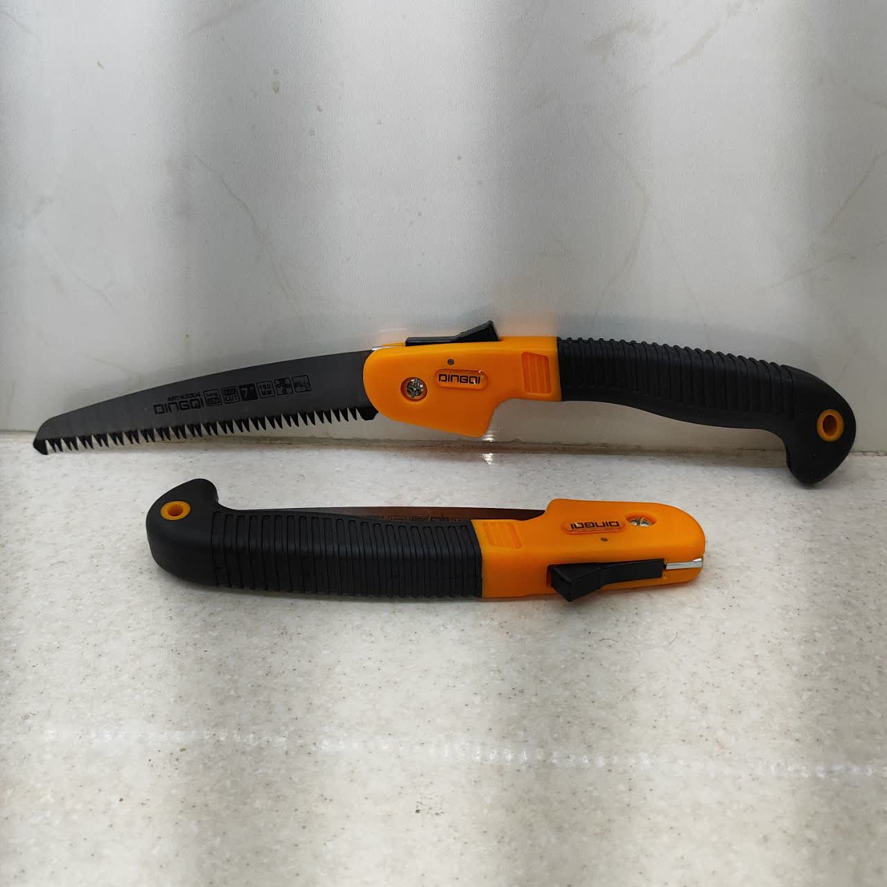 اره باغبانی تاشو حرفه ای دینگشی ، تولید شده از فولاد کربن بالا 55 ، دارای تیغه های 2 طرفه حرارت دیده شده و بسیار تیز و برنده با برش بسیار قوی ، دارای قفل ایمنی قوی ، محافظ دست در هنگام بسته شدن دارای دسته ی ارگونومیک نرم ، ضد تعریق و ضد لغزش ، دارای دوام و طول عمر بالا مخصوص برش چوب ، پلاستیک و سایر موارد ... بسیار زیبا و خوش دست می باشد . تیغه به طول 18 سانتی متر و دسته به طول 22 سانتی متر است . طول کل اره در حالت باز : 40 سانتی متر است . ساخت کشور : P.R.C