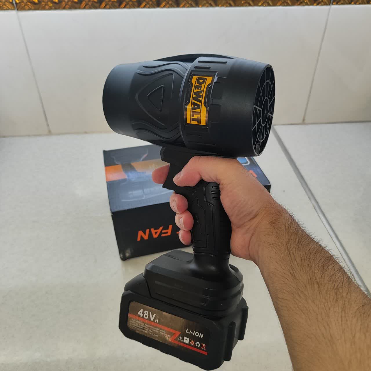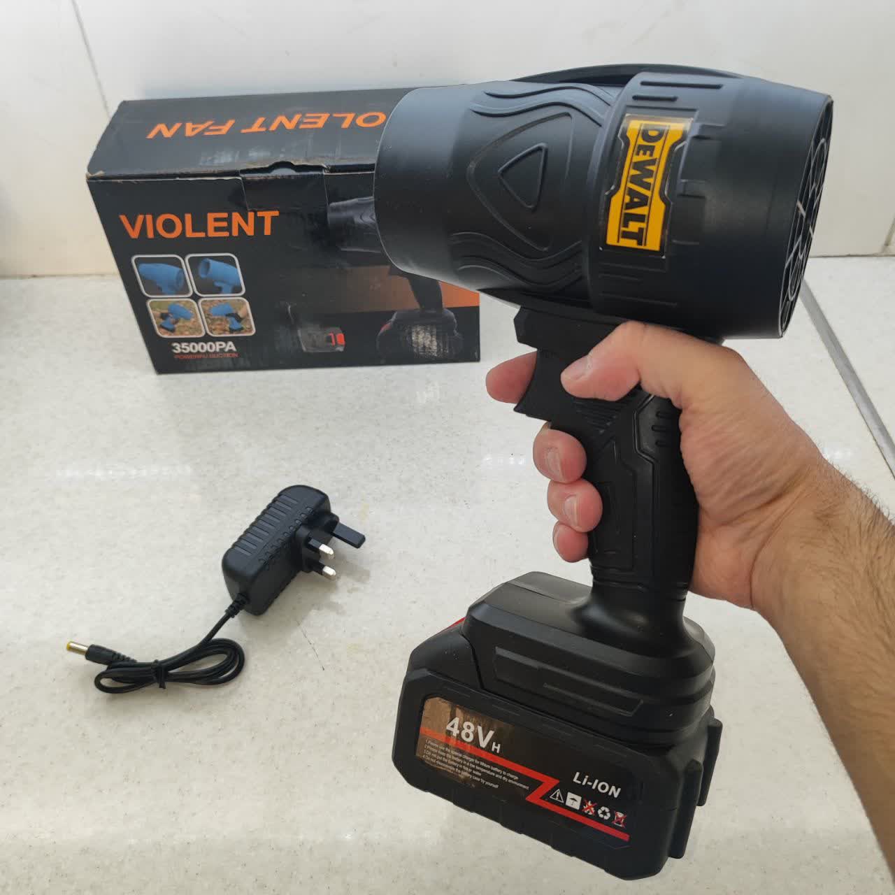 جت فن توربو دیوالت باتری 48 ولت دستگاه تولید باد دیوالت پرتاب فوق العاده دارای آداپتور سه شاخ مخصوص گرد گیری منزل و مغازه و ...