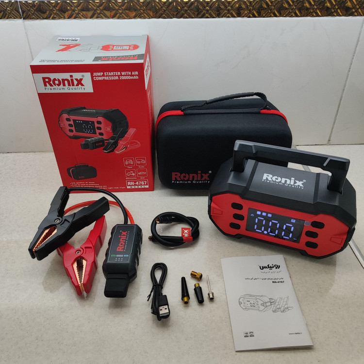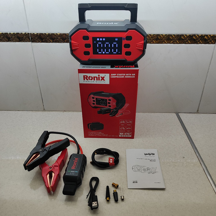 جامپ استارتر چندکاره خودرو رونیکس 20000 میلی آمپر مدل RH-4767 جهت استارت خودروی بنزینی و دیزلی در مواقع ضروری مدل 4767