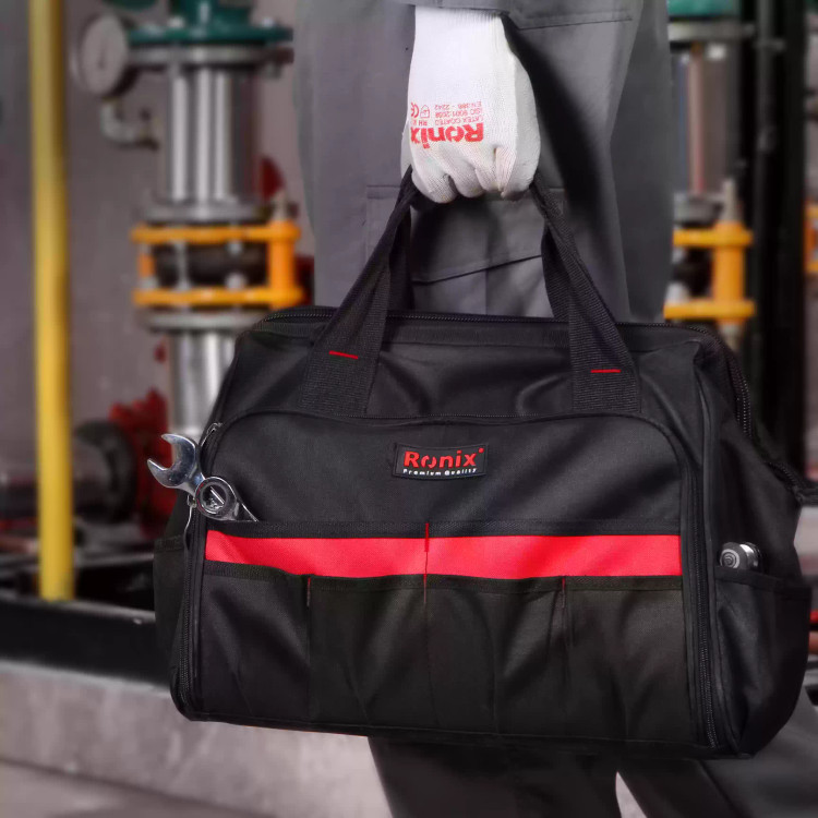 کیف ابزار بزرگ رونیکس GRAND مدل RH-9114 دارای 6 جیب داخلی + 18 جیب خارجی و جداکننده ی 9 عددی آچار کیف ابزار رونیکس 9114