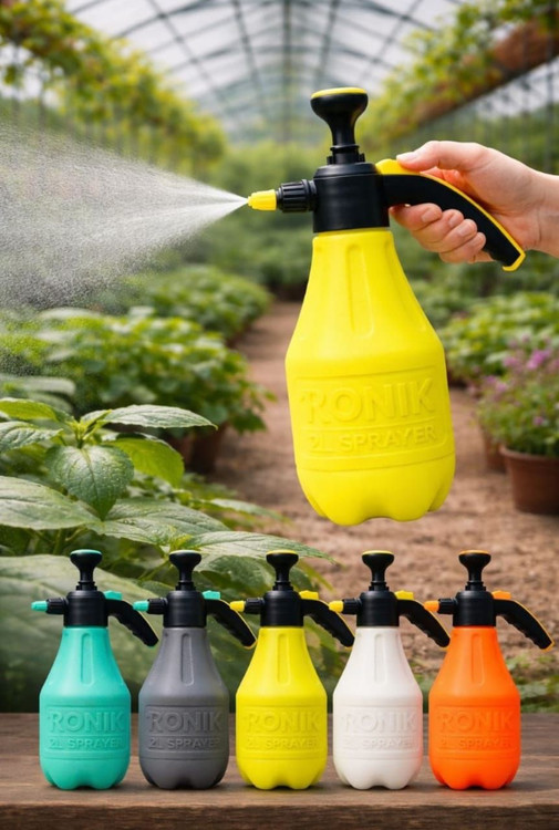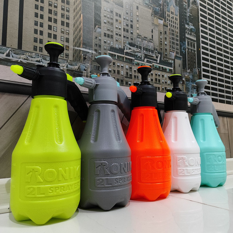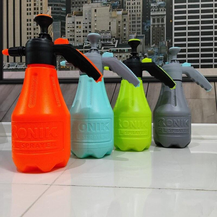 سمپاش 2 لیتری رونیک متفاوت با تمام مدلهای موجود در بازار دارای پیچ تخلیه هوا دارای قفل کن سر دسته که در هنگام سمپاشی نیازی به فشار دادن دسته نمیباشد (به صورت خودکار میپاشد ) بدنه پلاستیک ضخیم فشرده به همراه لوازم یدکی با تنوع رنگ بالا = زرد ابی طوسی نارنجی سفید