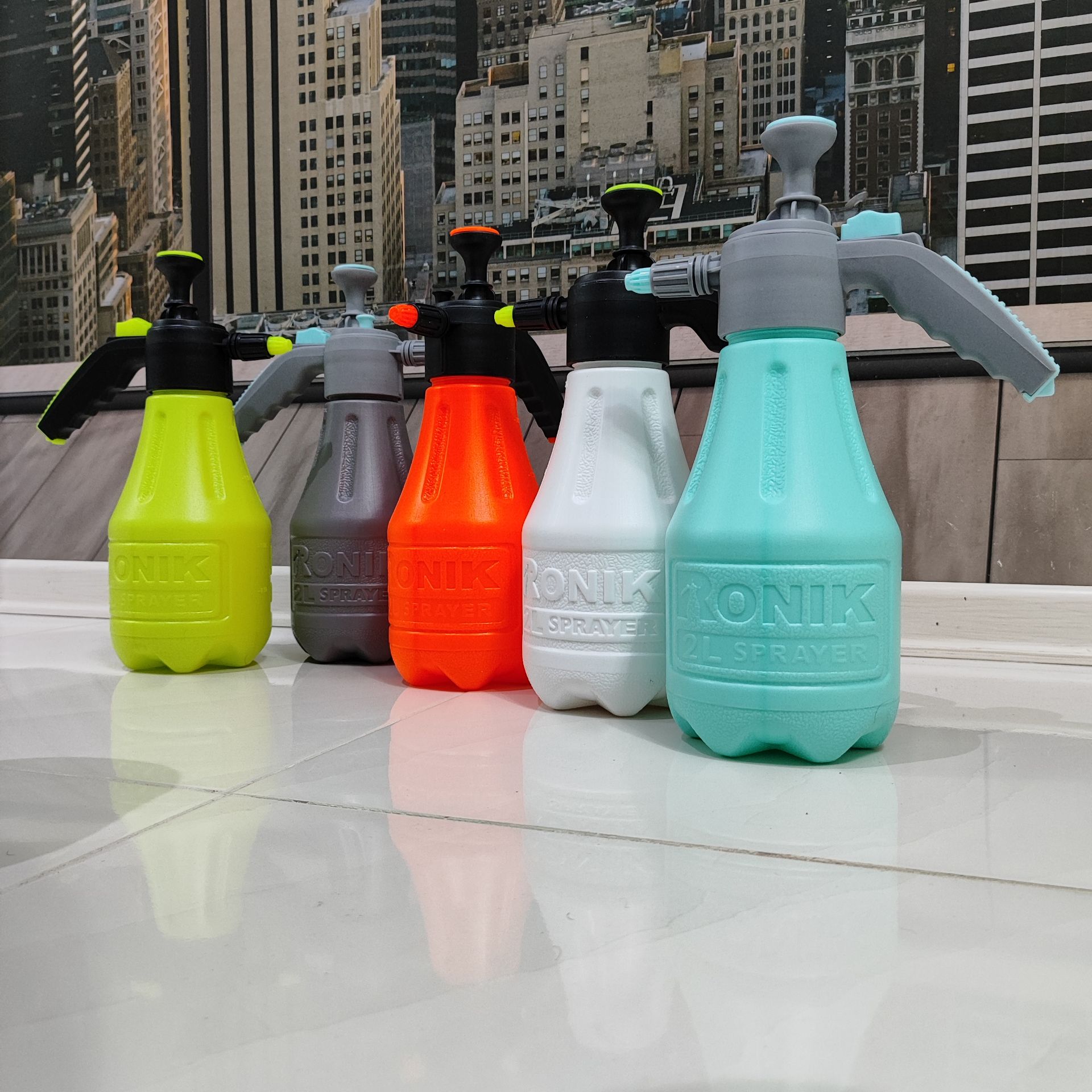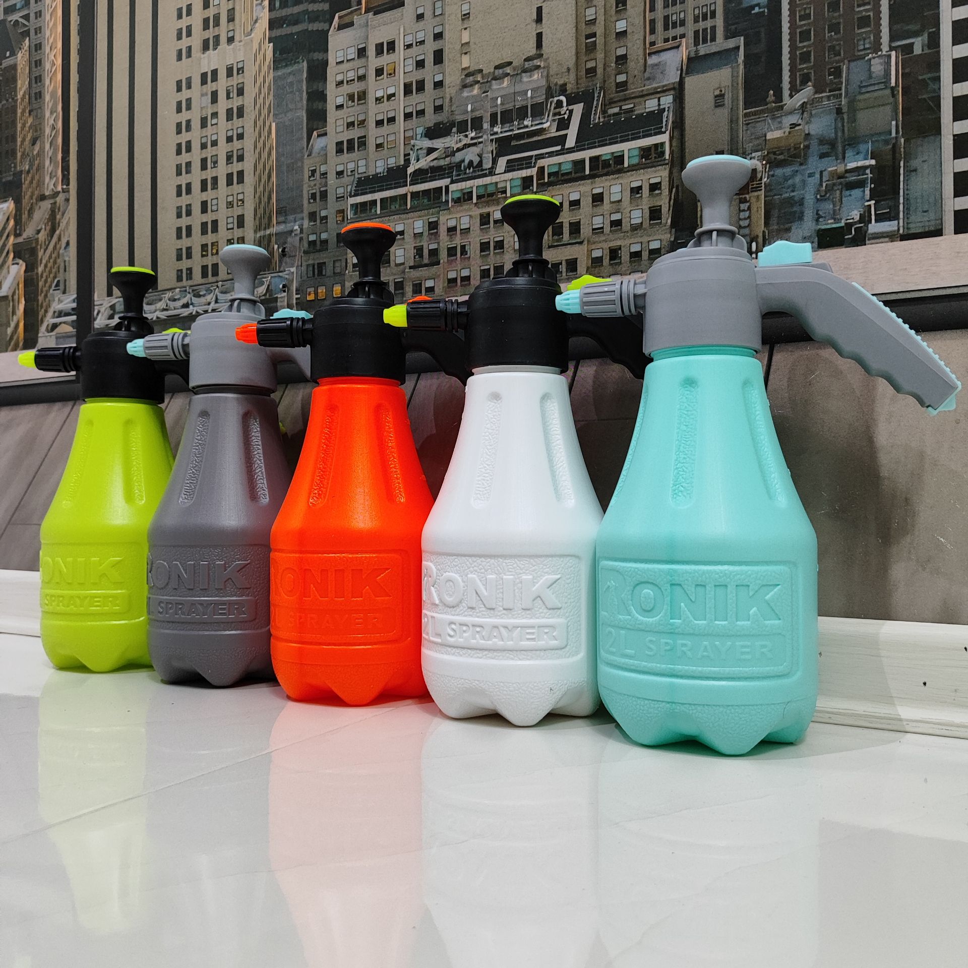 سمپاش 2 لیتری رونیک متفاوت با تمام مدلهای موجود در بازار دارای پیچ تخلیه هوا دارای قفل کن سر دسته که در هنگام سمپاشی نیازی به فشار دادن دسته نمیباشد (به صورت خودکار میپاشد ) بدنه پلاستیک ضخیم فشرده به همراه لوازم یدکی با تنوع رنگ بالا = زرد ابی طوسی نارنجی سفید