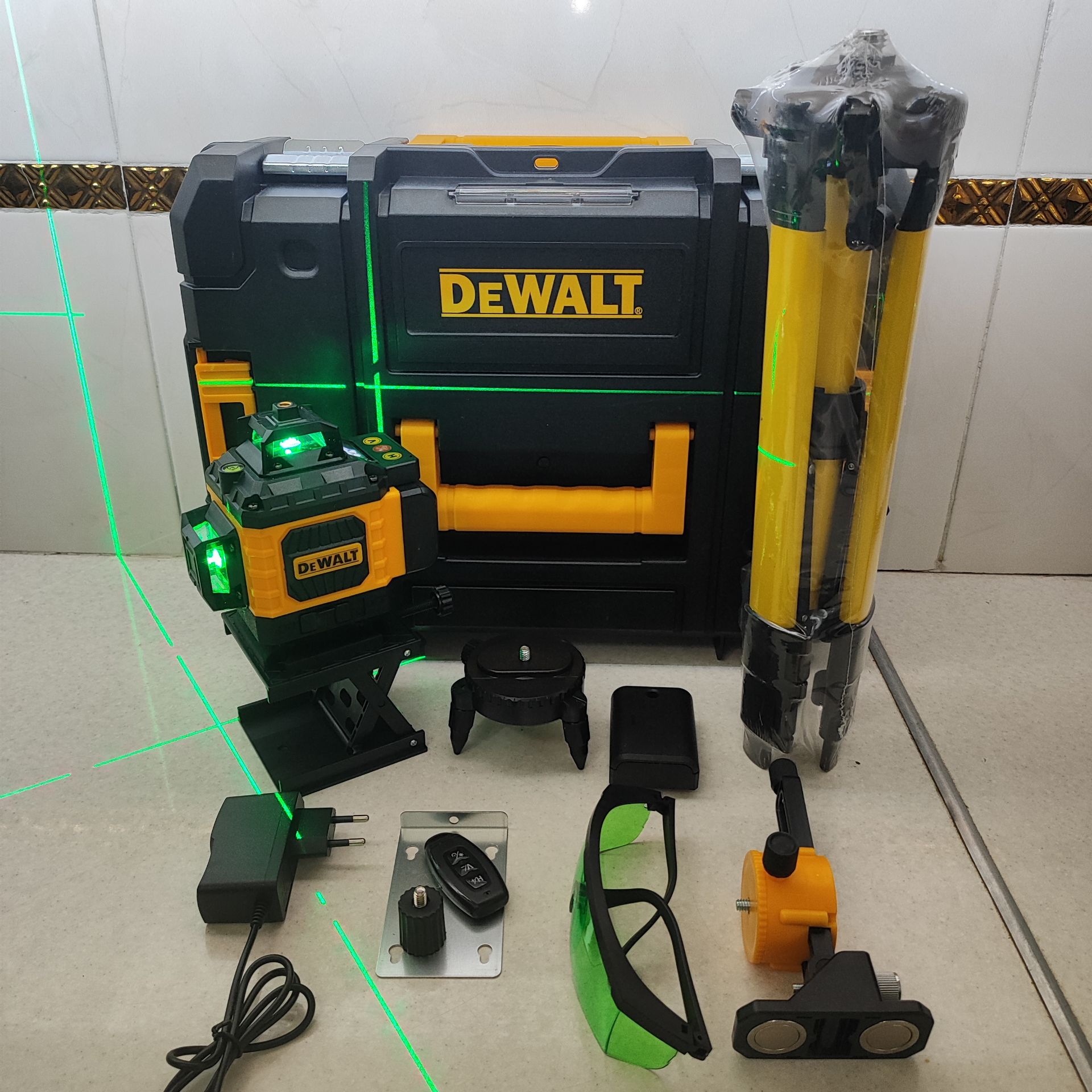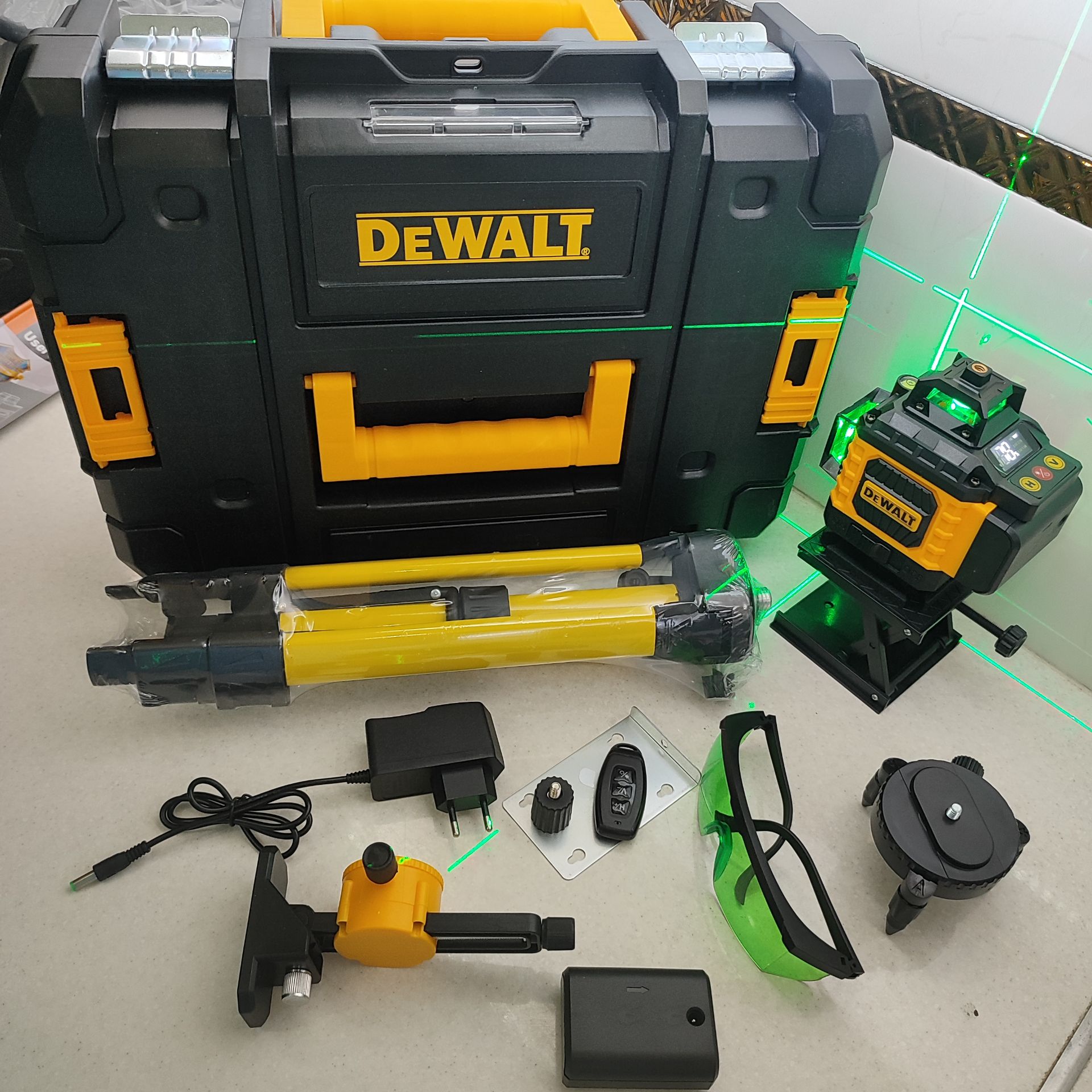 تراز لیزری دیوالت 360 درجه 4 بعدی سنسوردار مدل 4D-sensor مدل 4D-360 مدل 4D-16L همراه ریموت و لوازم جانبی مطابق تصاویر