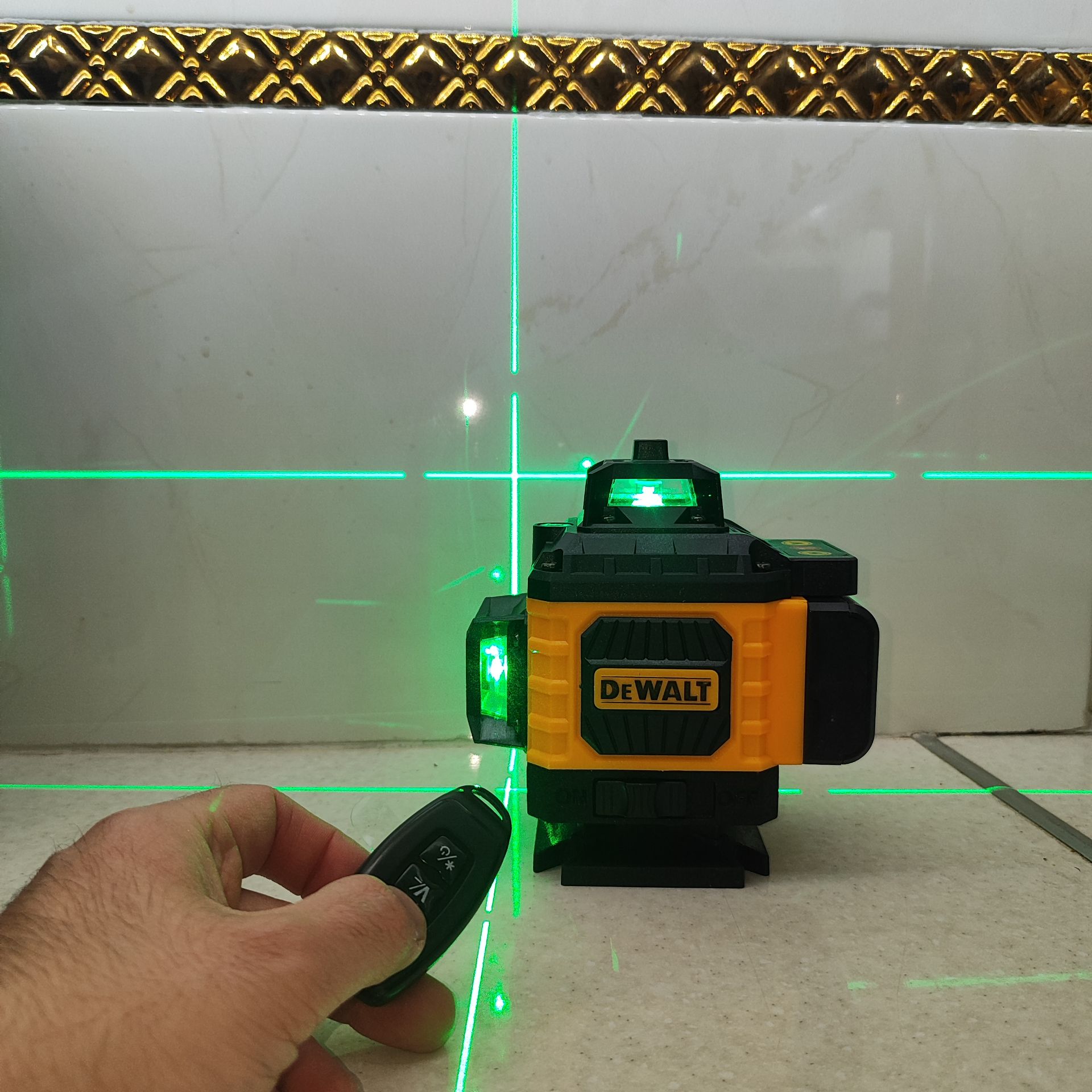 به وسیله تراز لیزری می توانید کارهایی که با ابزارهای سنتی ممکن است یک ساعت طول بکشد را در کسری از ثانیه انجام دهید. پیشرفت تکنولوژی موجب شده ابزارهای جدیدی برای راحت تر کردن کارها تولید شوند. یکی از این ابزارها تراز لیزری دیوالت است که به مدل سنسوردار معروف می باشد. در حقیقت ویژگی که این مدل از تراز لیزری دیوالت را نسبت به سایر مدل ها متمایز می کند داشتن سنسور است. این بدین معنی است که با حرکت دست های خود و بدون لمس هیچ چیزی می توانید خطوط تراز را روشن و خاموش کنید. همانطور که از اسمش پیداست تراز لیزری دیوالت 4 بعدی است، بدین معنی که 4 خط دارد. با اشاره دست تان به هر لیزری می توانید آن ها را خاموش و روشن کنید. البته برای این کار باید نزدیک تراز باشید. به غیر از حرکت دست می توانید خطوط لیزر را به سه روش مختلف خاموش و روشن کنید. اولین روش این است که به وسیله دکمه های لمسی که بر روی دستگاه قرار دارد می توانید خطوط افقی و عمودی را روشن کنید. یکی دیگر از روش ها استفاده از ریموت کنترل است، به وسیله دکمه های H و V که بر روی ریموت قرار دارد می توانید پرتوهای لیزر را خاموش و روشن کنید. روش سوم استفاده از اپلیکیشن Laser Level بر روی گوشی تان است. این اپلیکیشن برای گوشی های اندروید و آیفون در دسترس است. از اپلیکیشن می توانید به عنوان یک ریموت کنترل استفاده کنید. در حقیقت این مدل از تراز لیزری دیوالت بلوتوث دار است. یکی از کاربردهای دیگر ریموت کنترل تنظیم شفافیت نور پرتو لیزر است. به وسیله ریموت کنترل می توانید بسته به روشنی و تاریکی محیط، میزان شفافیت پرتو لیزر را تنظیم کنید. نوع لیزر این تراز Class 2 و حداکثر برد آن 20 متر است. یکی دیگر از ویژگی های این دستگاه داشتن قابلیت خودترازی است، بدین معنی که اگر زاویه انحراف در محدوده 4- تا 4+ باشد بطور خودکار دستگاه خود را تراز می کند، اگر هم زاویه انحراف بیشتر از این مقدار باشد با پخش آلارم هشدار به اپراتور اعلام می کند که از حالت تراز خارج شده و باید به صورت دستی آن را تنظیم کنید.
