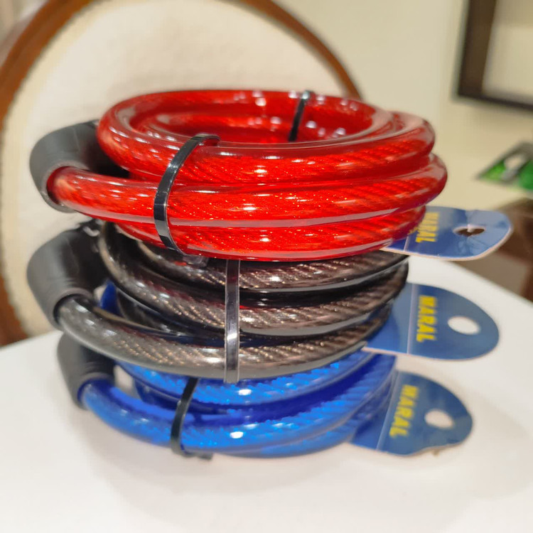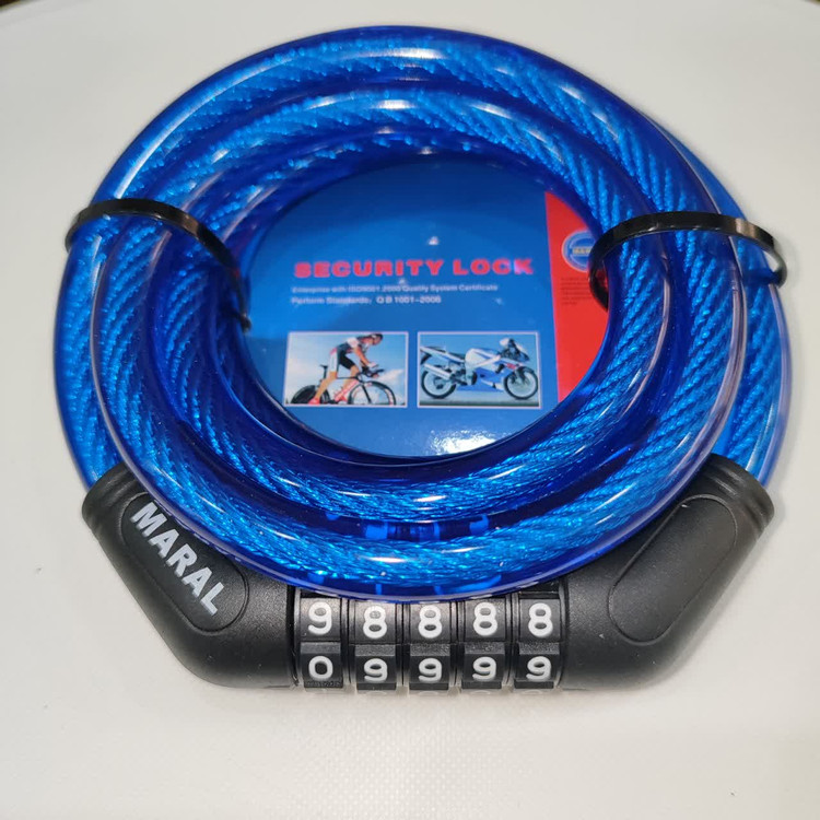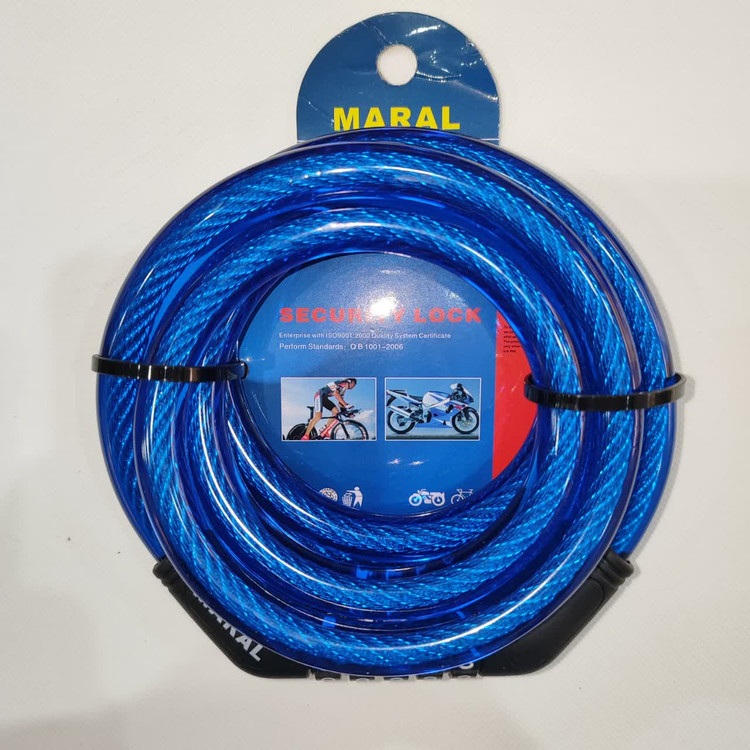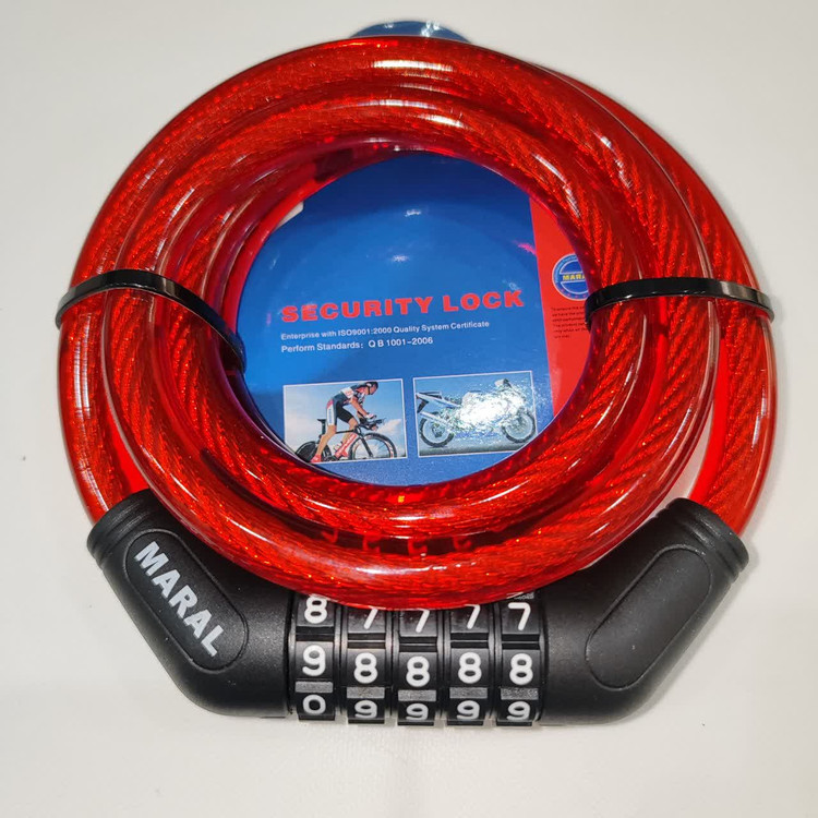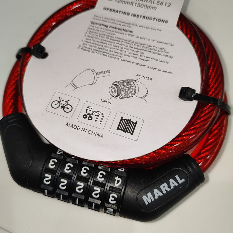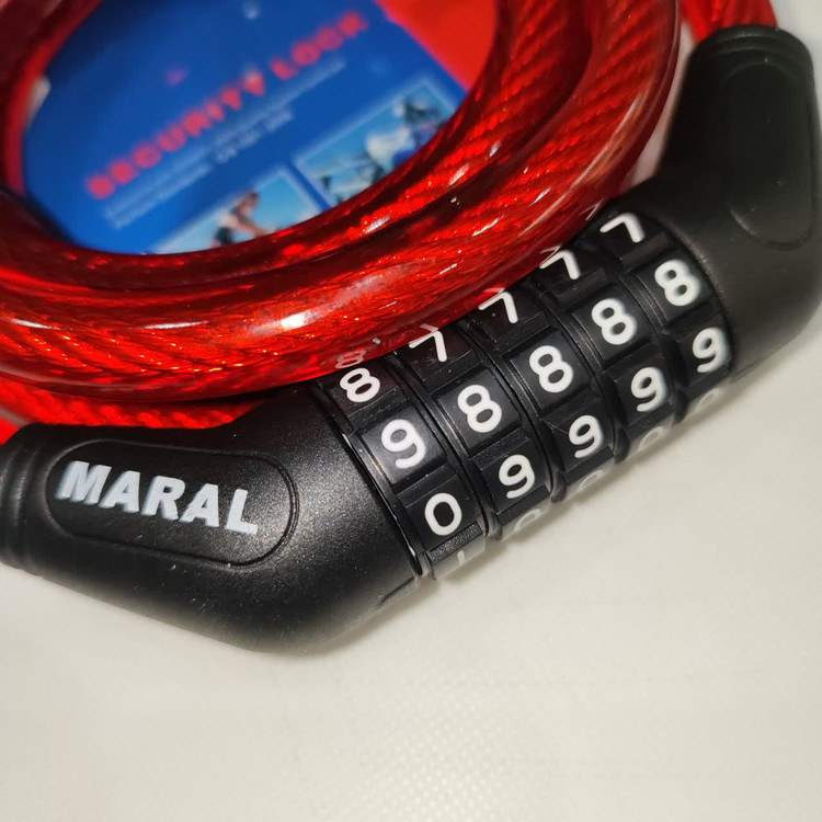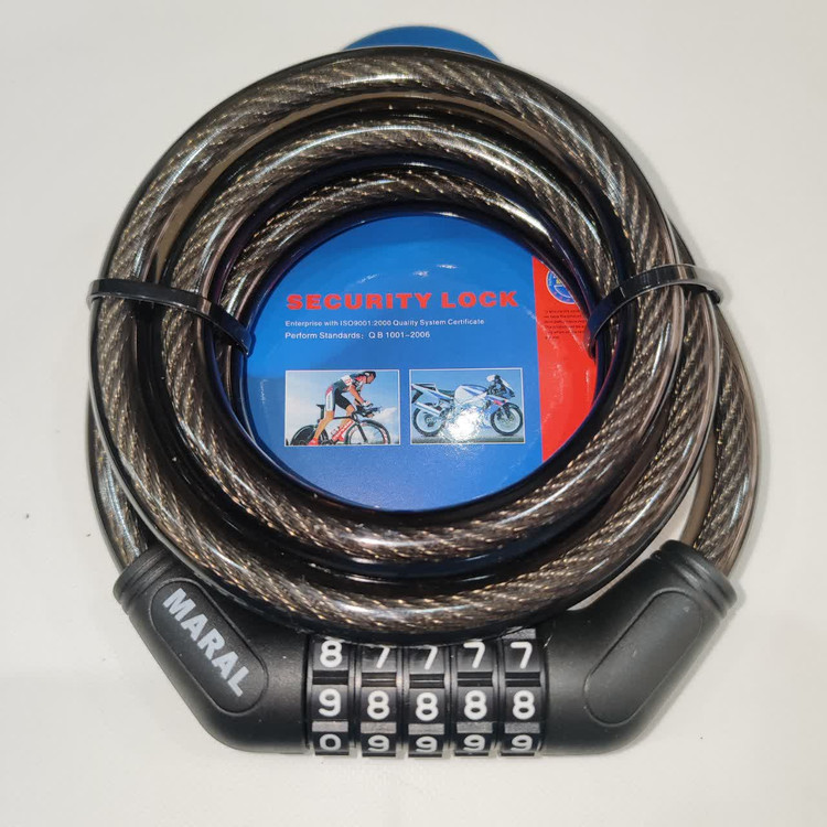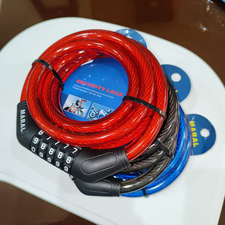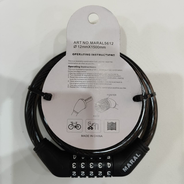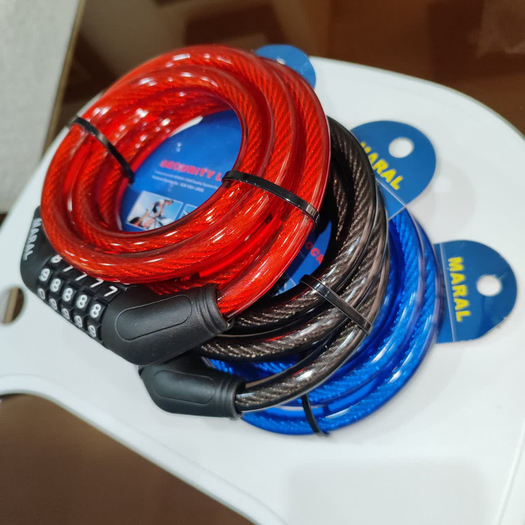 قفل رمزی 5 رقمی 12x1500mm مارال MARAL کد 5612 متراژ 1/5 متری قفل دوچرخه قفل موتور روکش ضد خش و سیم بکسل فولادی ضد سرقت