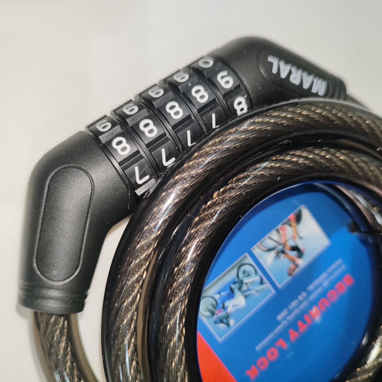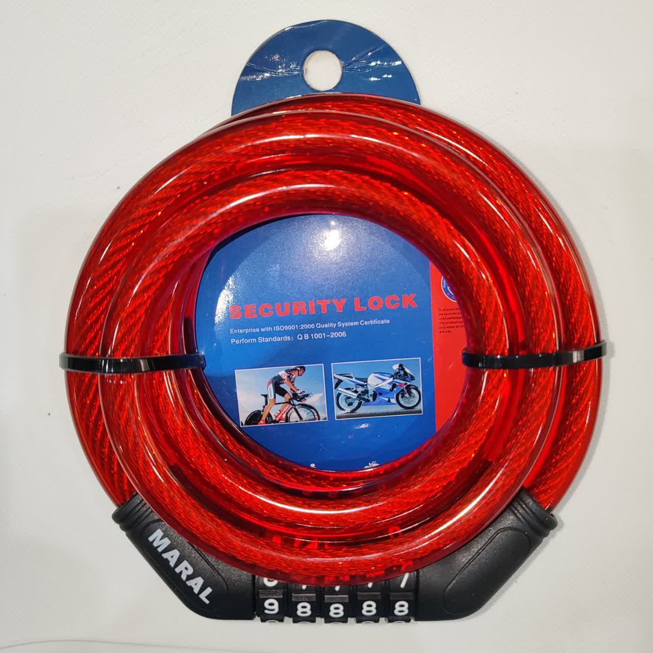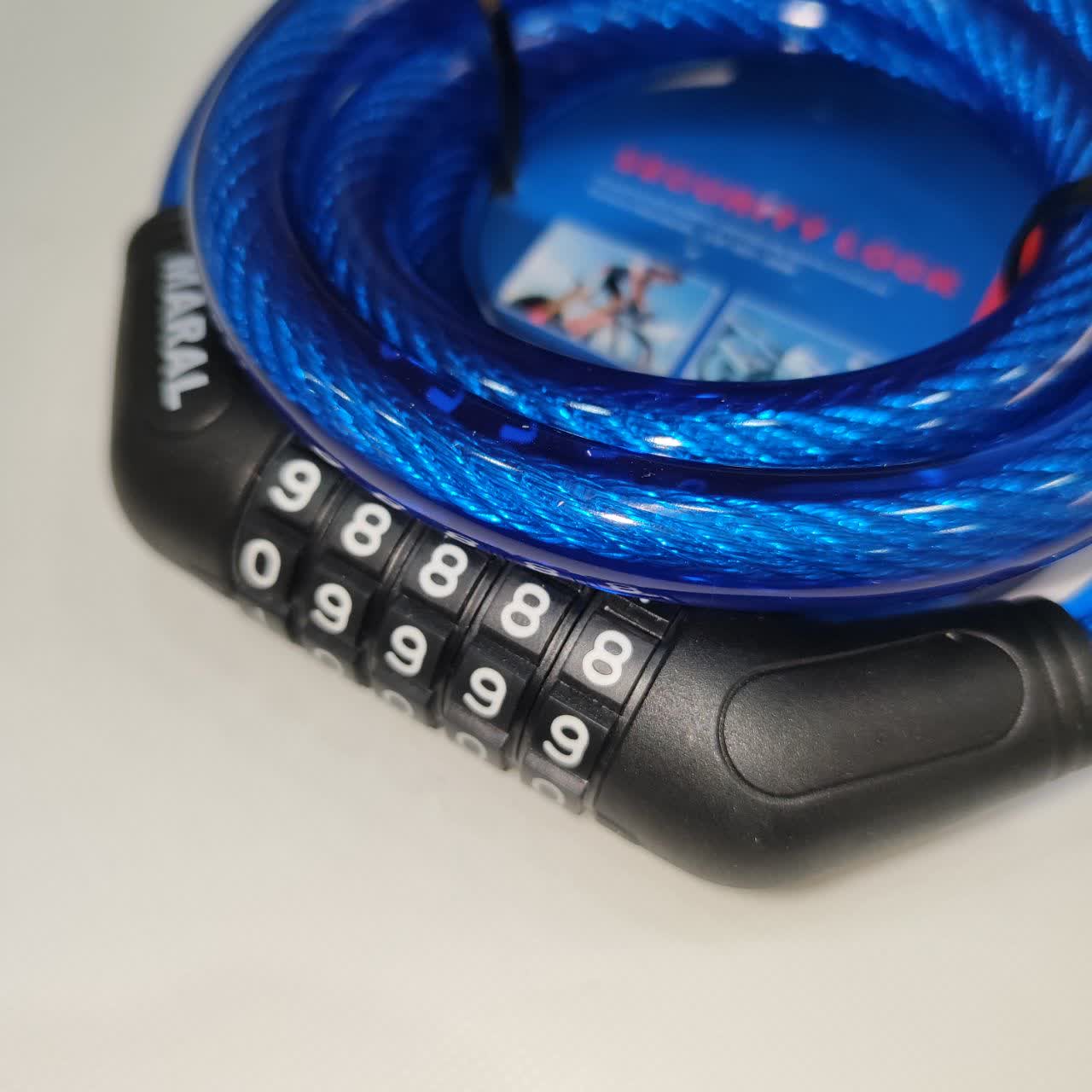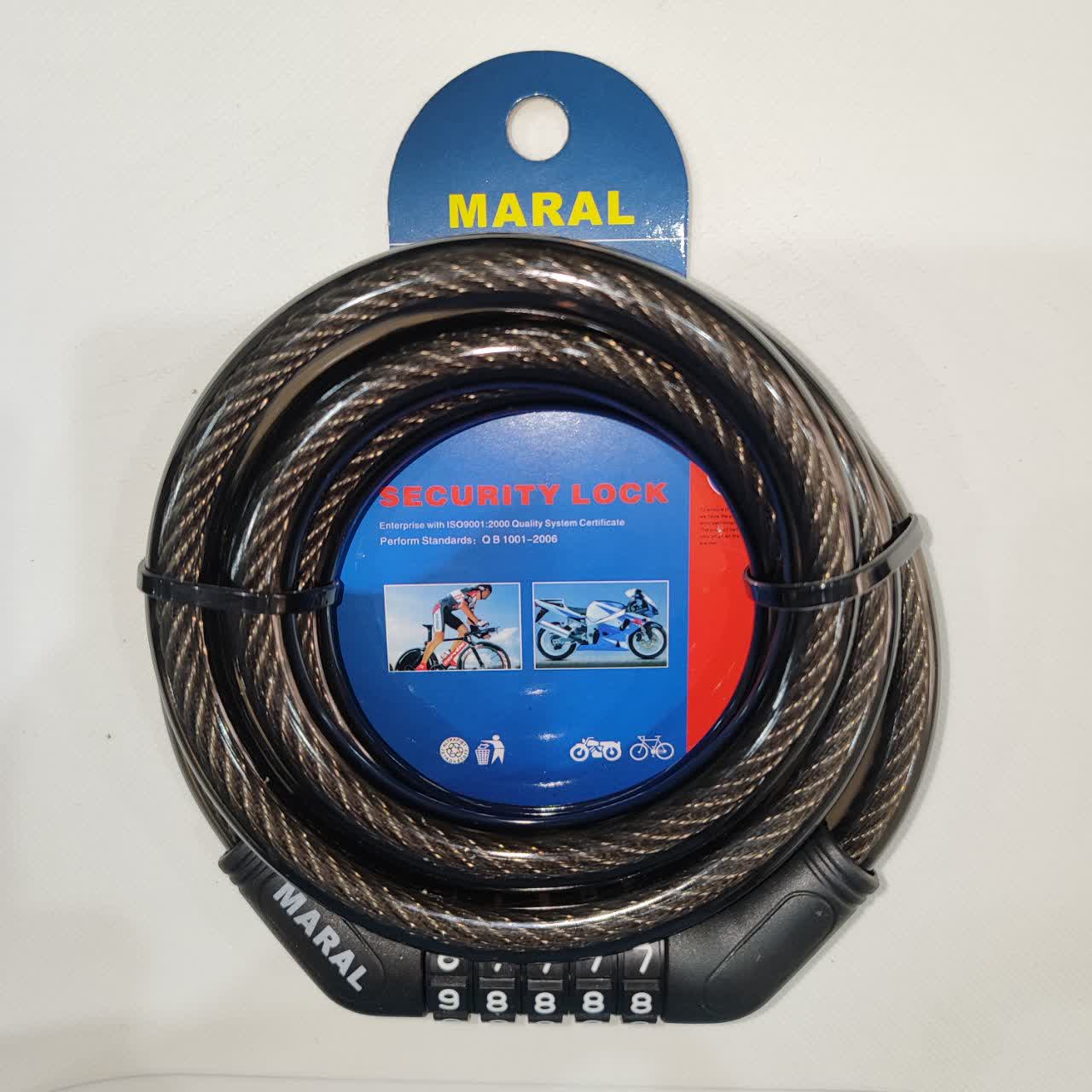 قفل رمزی 5 رقمی 12x1500mm مارال MARAL کد 5612 متراژ 1/5 متری قفل دوچرخه قفل موتور روکش ضد خش و سیم بکسل فولادی ضد سرقت