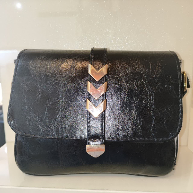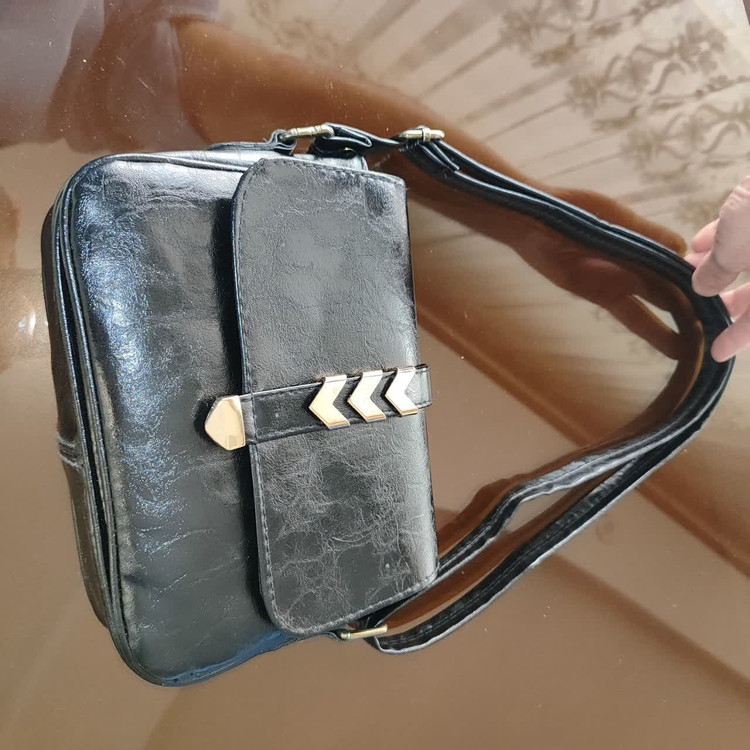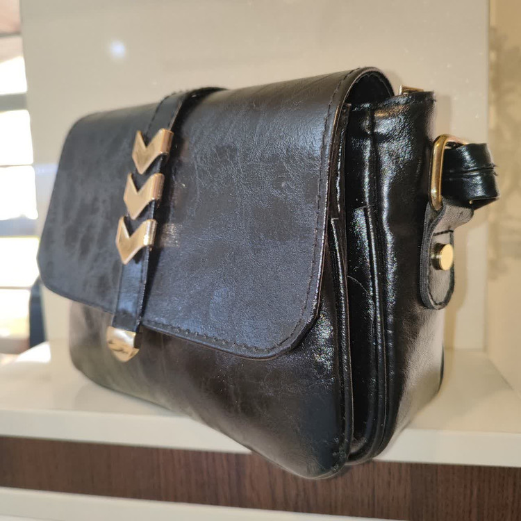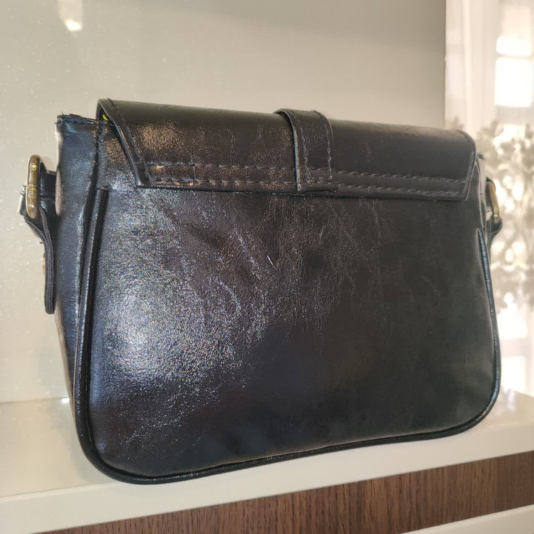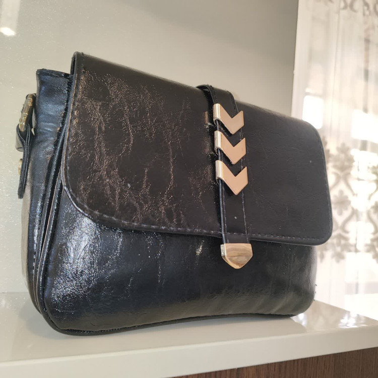 کیف چرم مصنوعی وارداتی رنگ مشکی ورنی سایز 22 کیفیت عالی دارای زیپ و جیب کپی