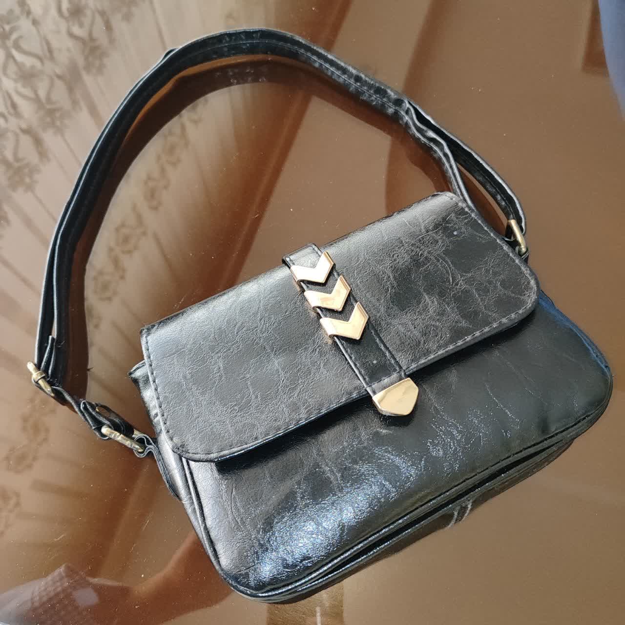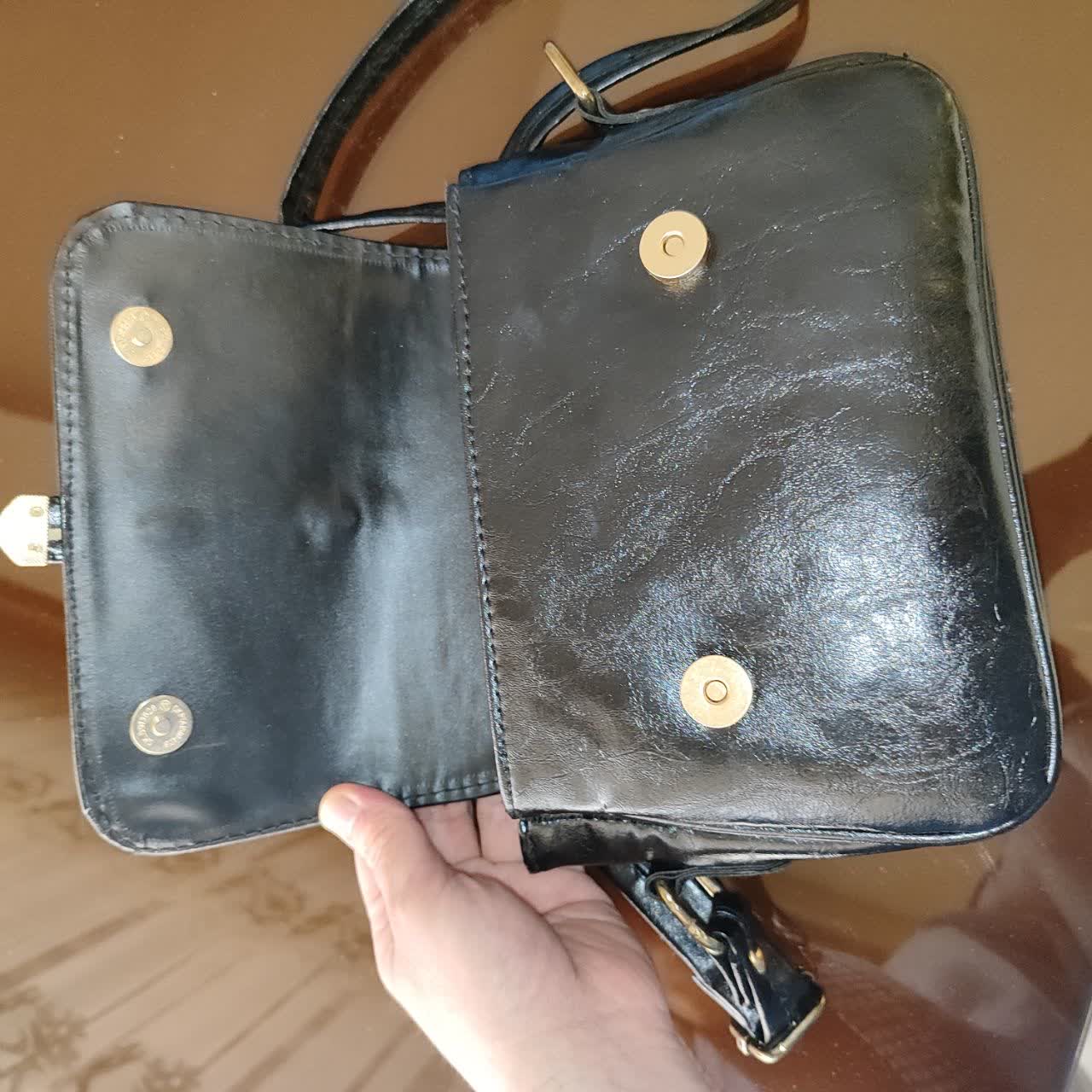 کیف چرم مصنوعی وارداتی رنگ مشکی ورنی سایز 22 کیفیت عالی دارای زیپ و جیب کپی