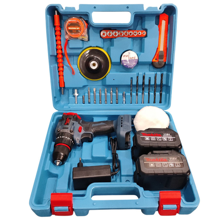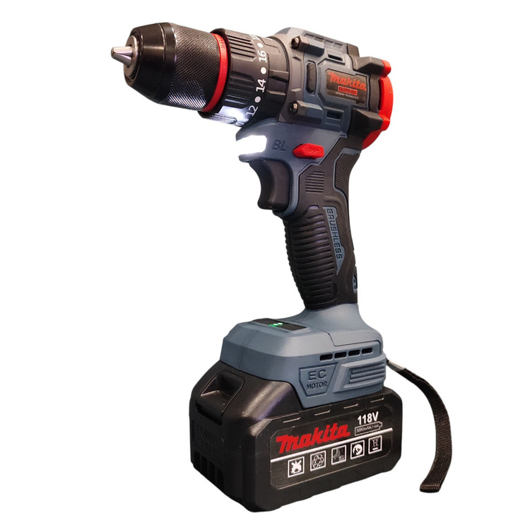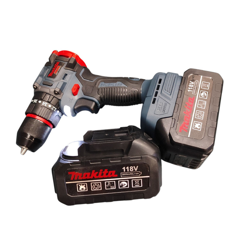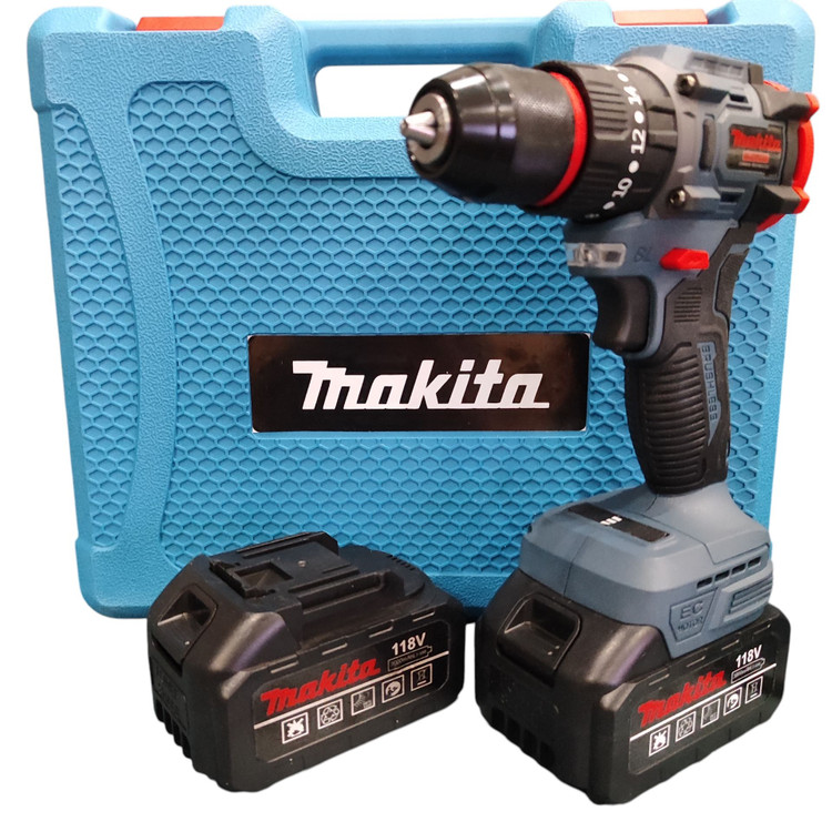دریل شارژی چکشی ماکیتا صنعتی 118 ولت مدل makita-118 مدل DXR-09 دوباتری سه نظام فلزی پیچگوشتی شارژی ماکیتا با کیف و لوازم جانبی کامل کیفیت عالی