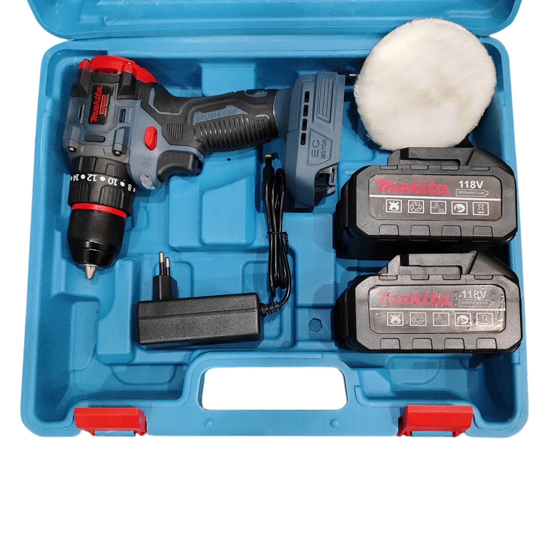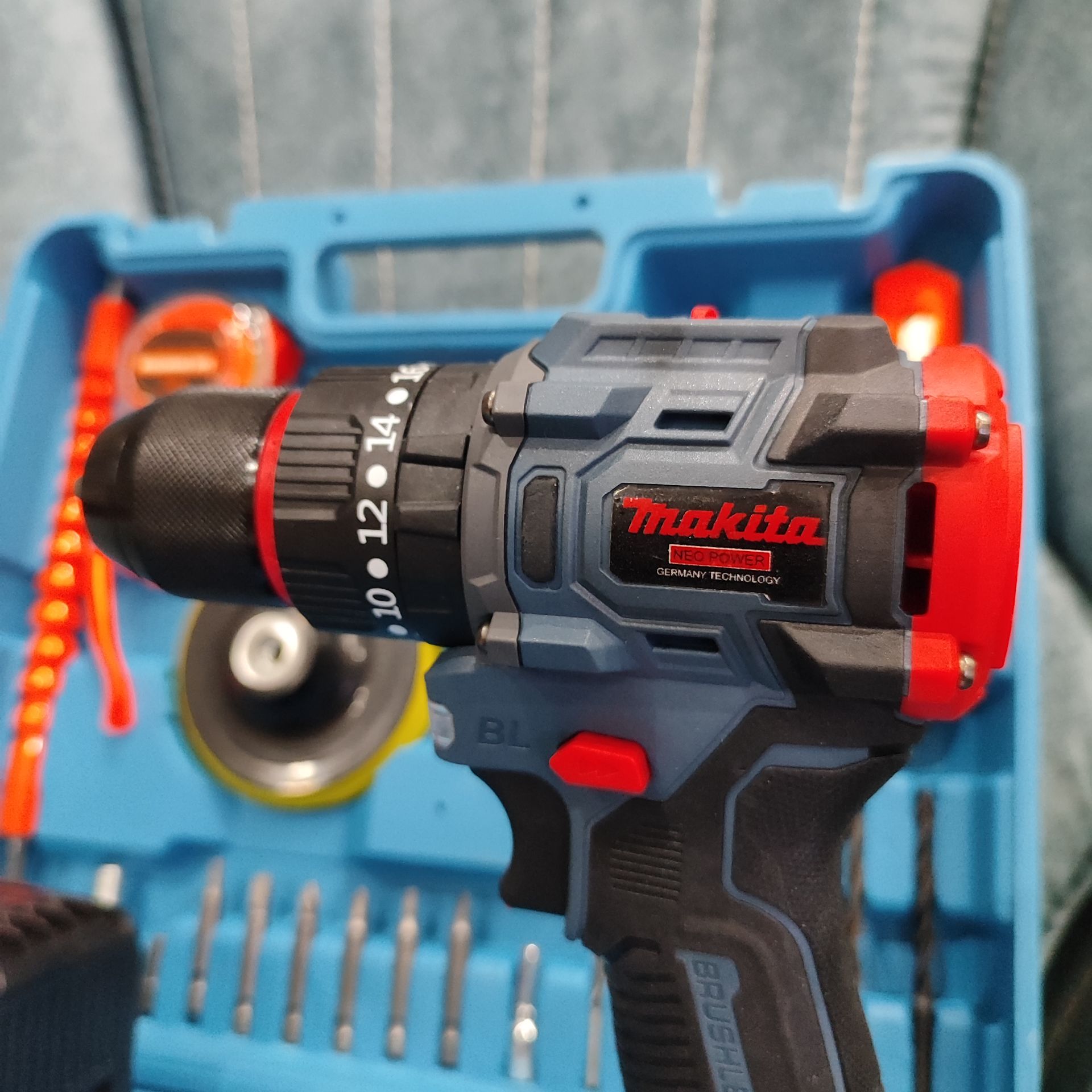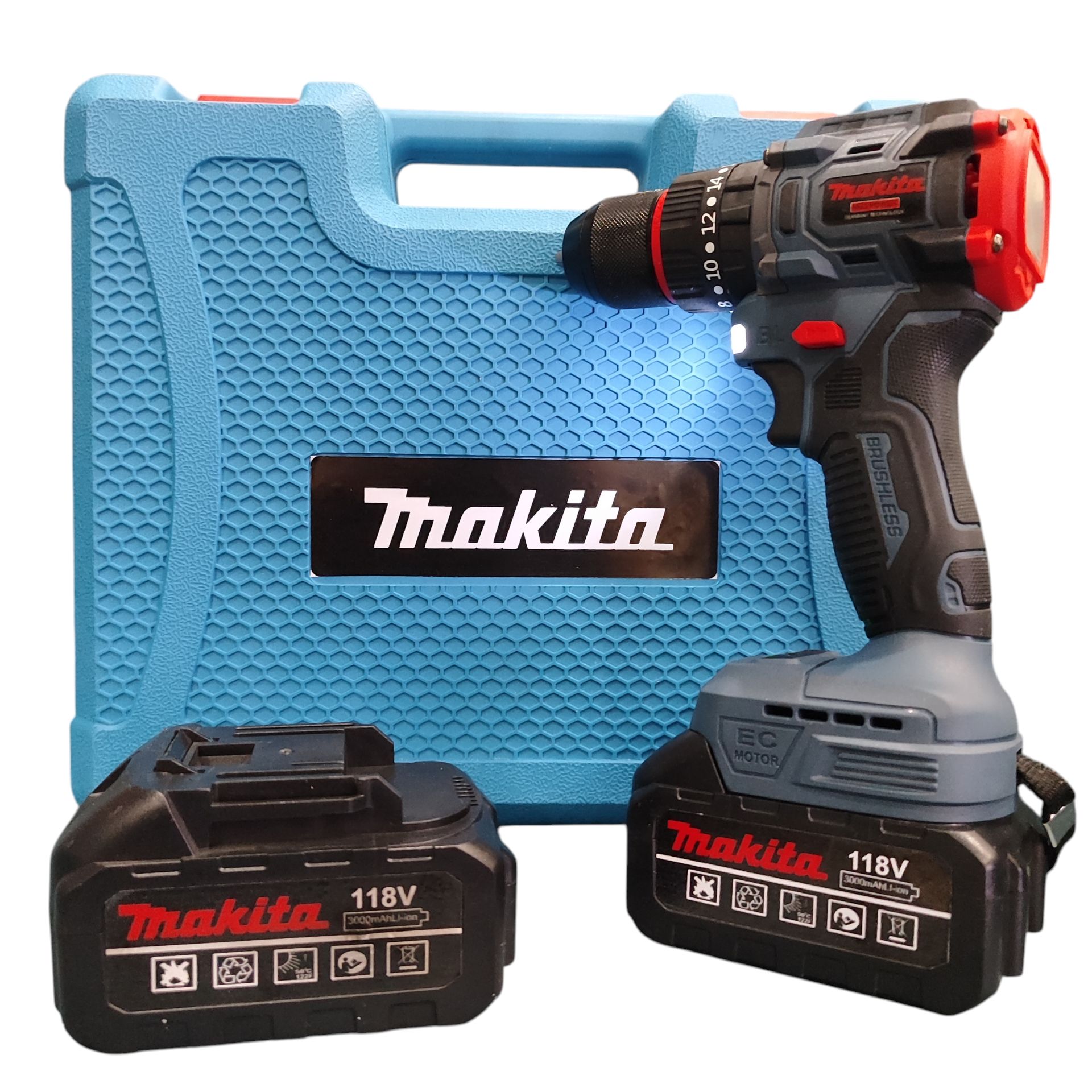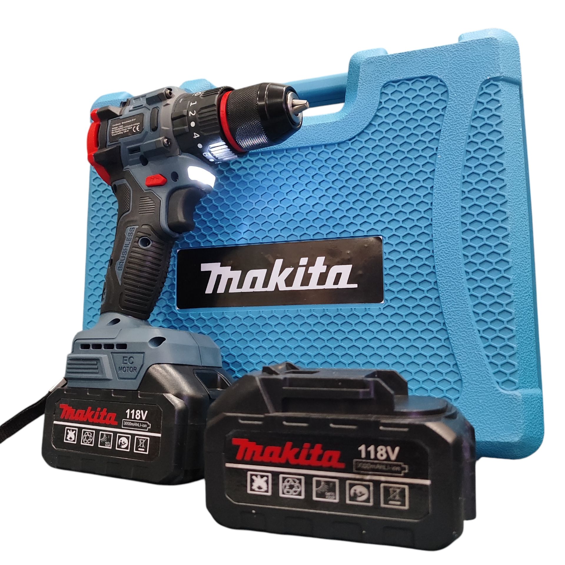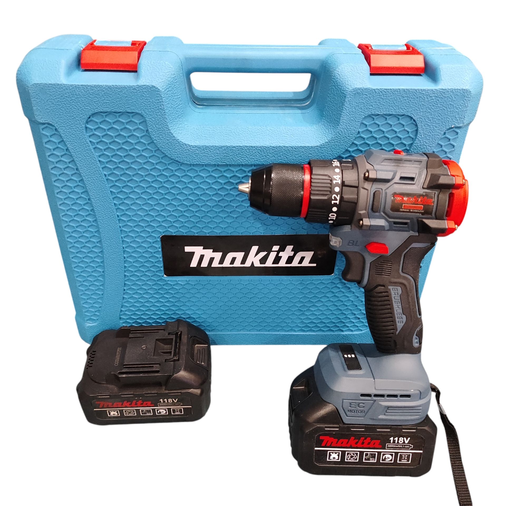 دریل شارژی چکشی ماکیتا صنعتی 118 ولت مدل makita-118 مدل DXR-09 دوباتری سه نظام فلزی پیچگوشتی شارژی ماکیتا با کیف و لوازم جانبی کامل کیفیت عالی