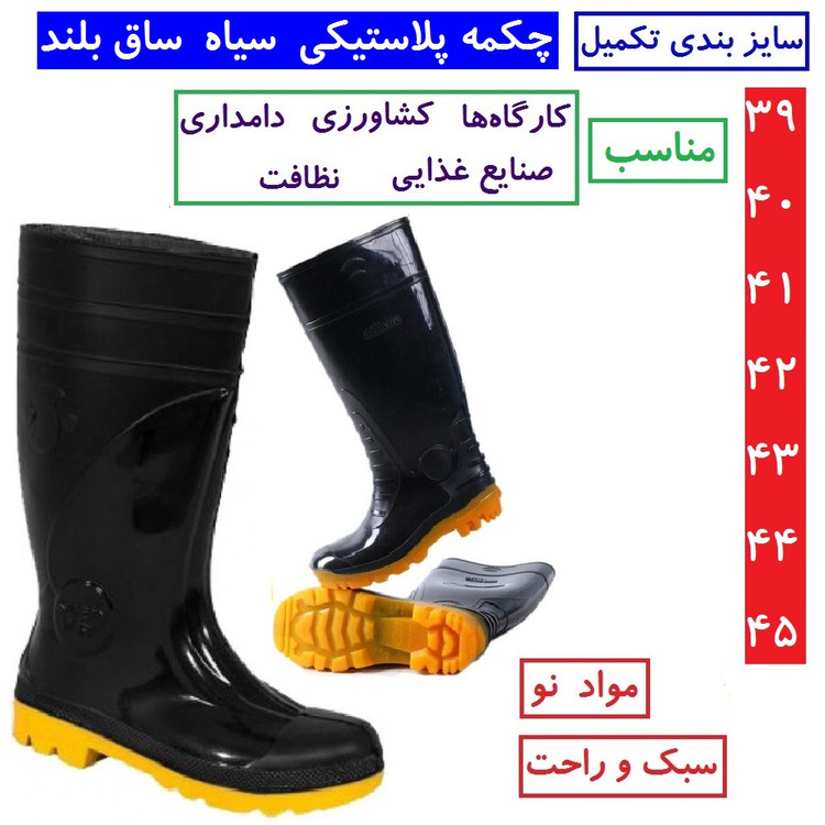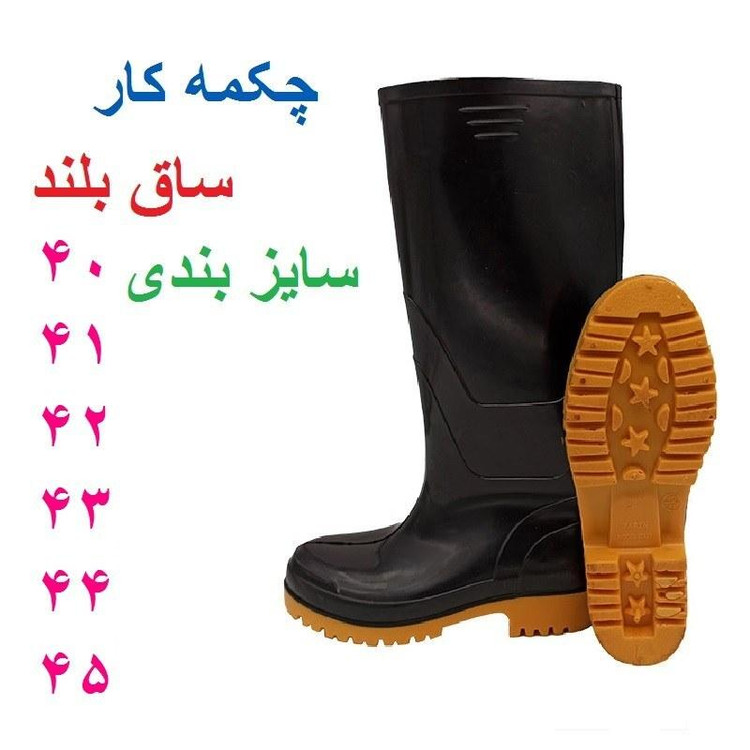 چکمه کار پلاستیکی ساق بلند رنگ مشکی لاستیکی مناسب باغبانی نظافت ساختمان چکمه کار لاستیکی