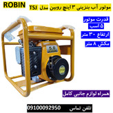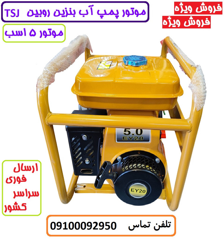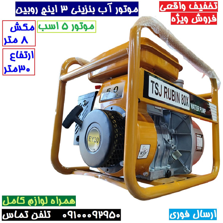 موتور آب موتور پمپ بنزینی 3 اینچ 5 اسب روبین با لوازم جانبی کامل مطابق تصویر پس کرایه