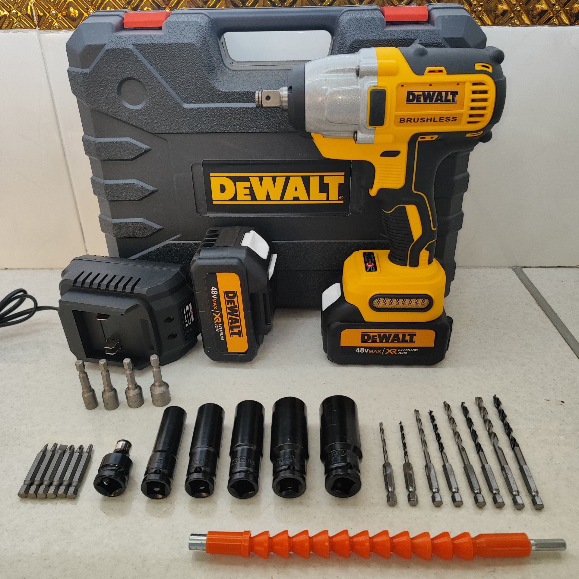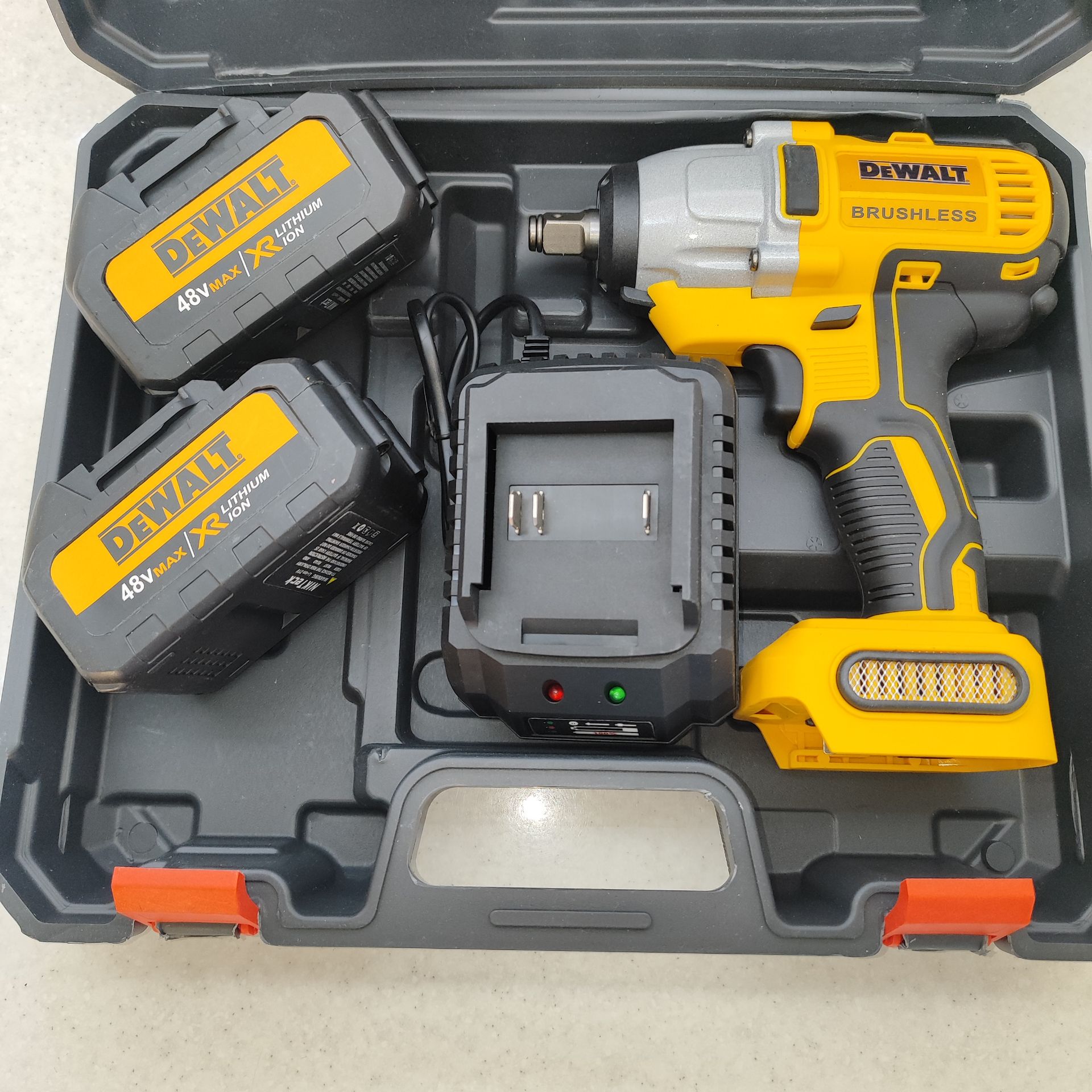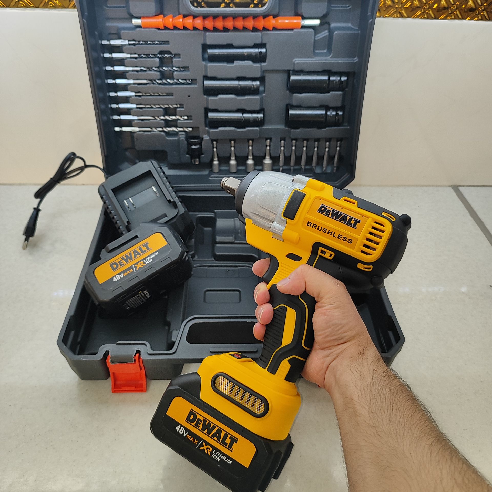 بکس شارژی حرفه ای دیوالت 48 ولت دو باتری با لوازم کامل 750 نیوتن مدل 88V_6A مدل DCD199V مدل DCF891P2T مدل DF58CC