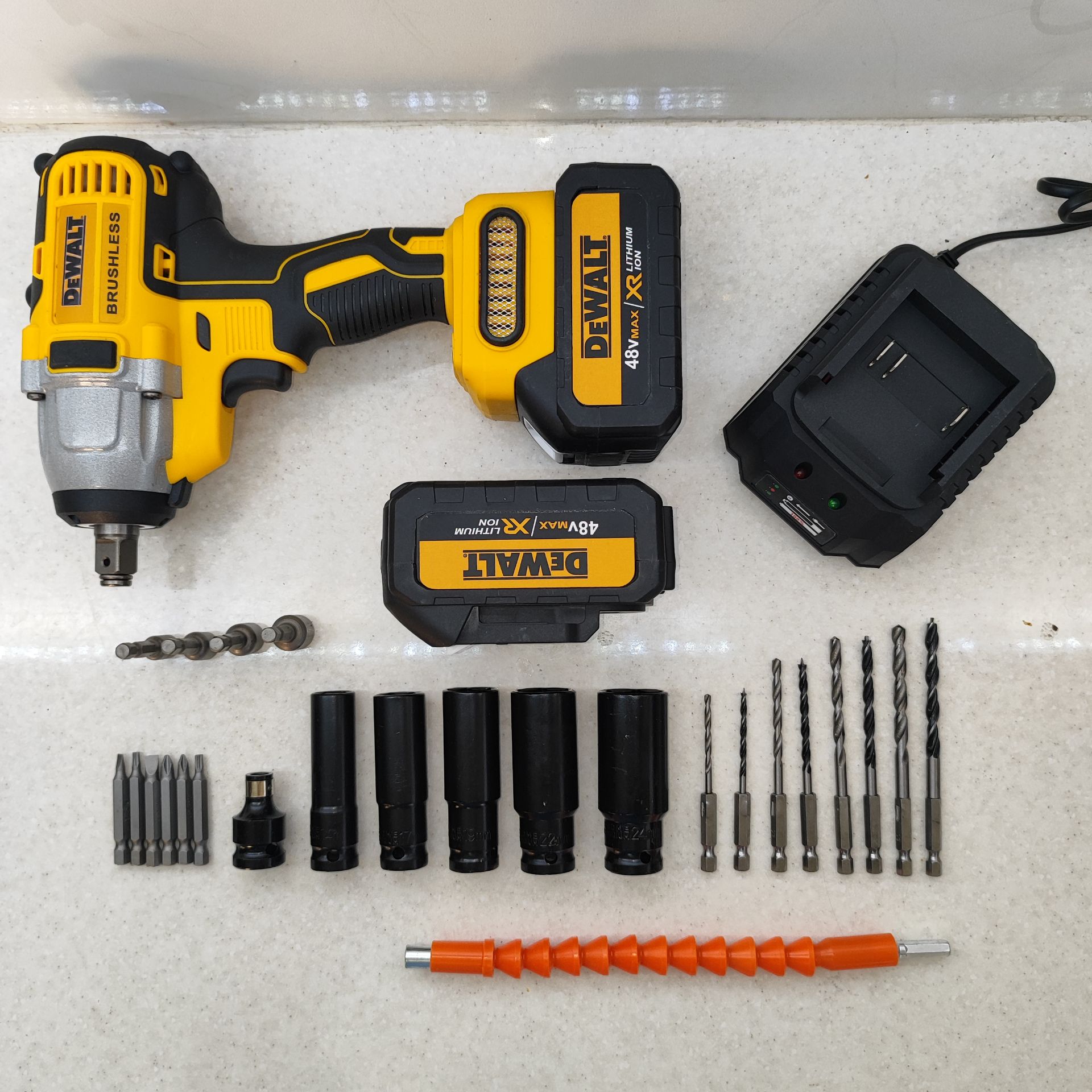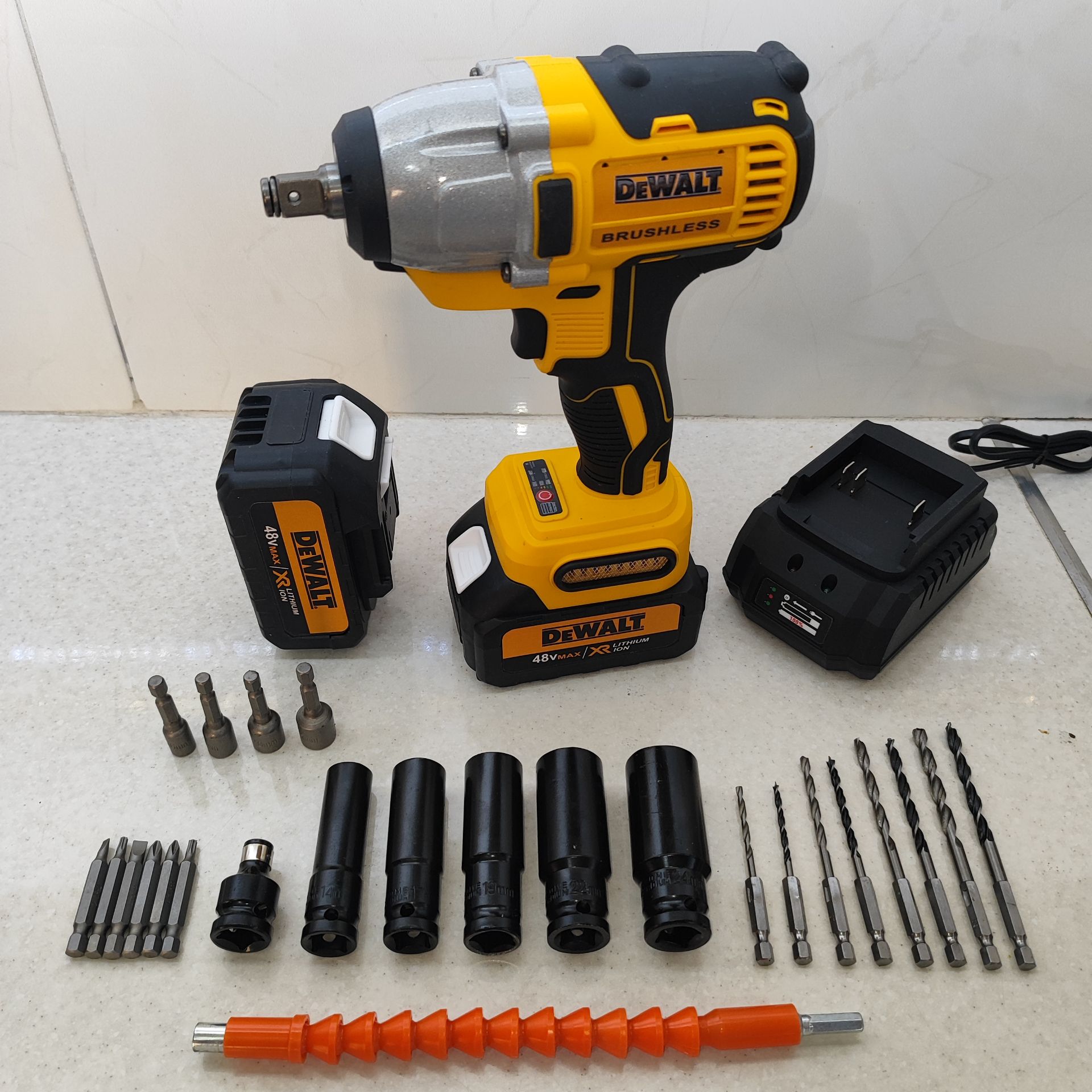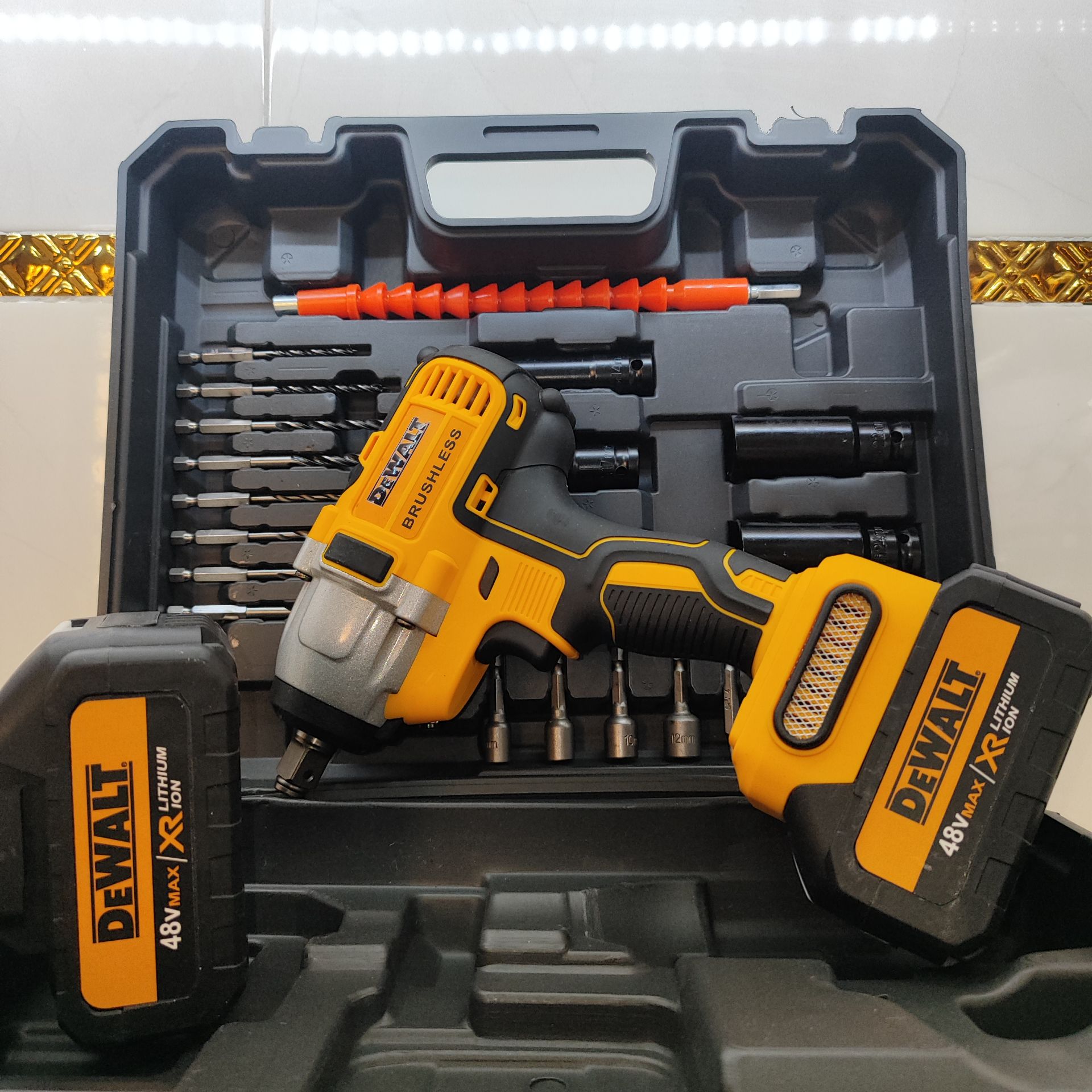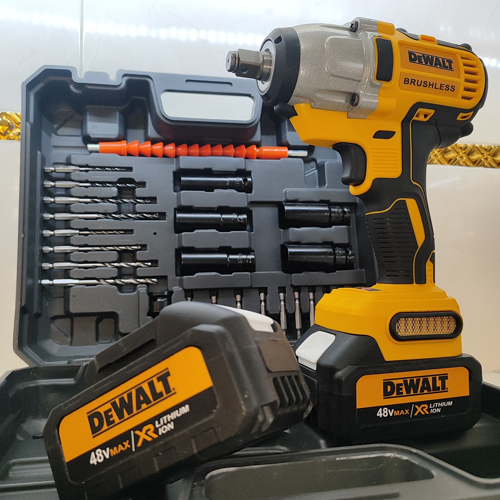 بکس شارژی حرفه ای دیوالت 48 ولت دو باتری با لوازم کامل 750 نیوتن مدل 88V_6A مدل DCD199V مدل DCF891P2T مدل DF58CC