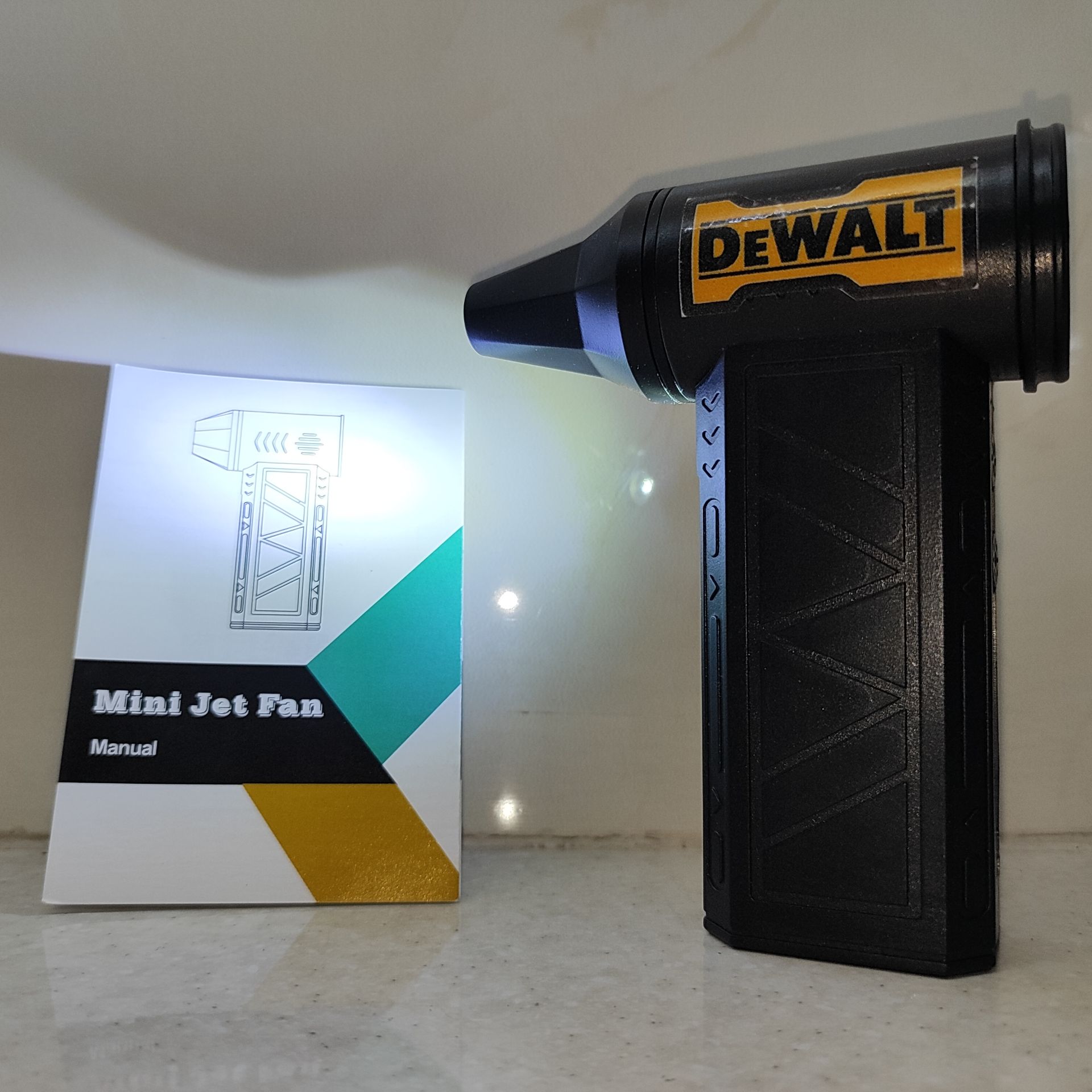 مینی جت فن چراغدار دیوالت 3 حالت پرتاب باد با دو سری پرتاب باد بسیار قوی شارژر تایپ سی و نشانگر میزان شارژ