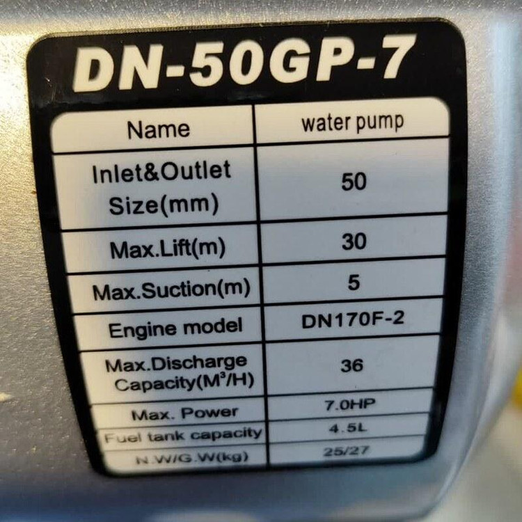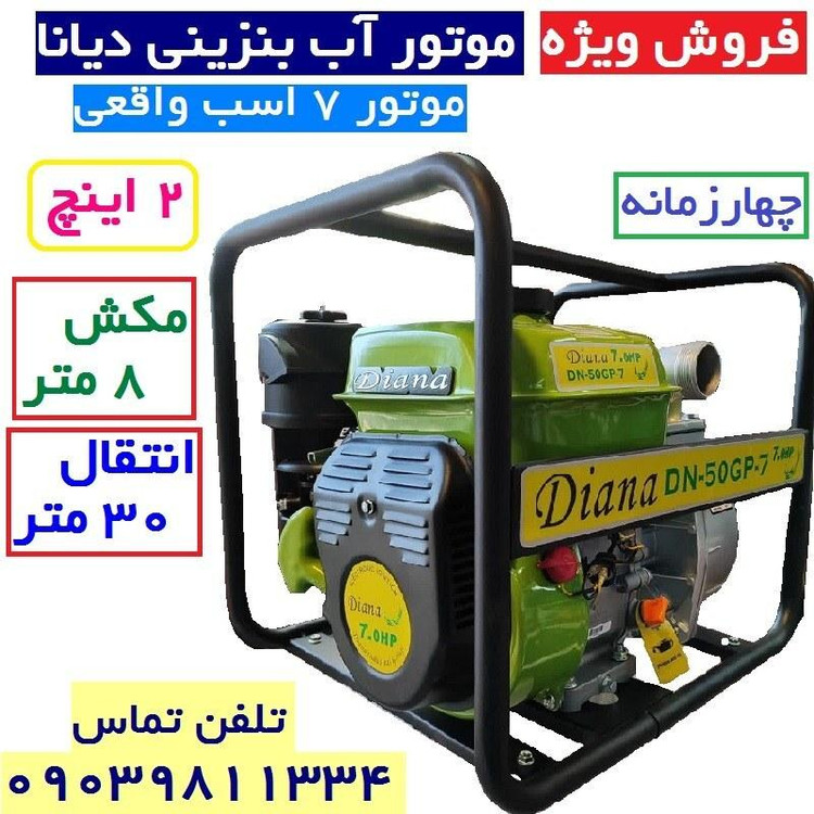 نوع سوخت مصرفی : بنزین روشن شدن به صورت هندلی موتور چهار زمانه توان موتور : 7 اسب بخار دهانه ورودی : 2 اینچ (50 میلی متر) دهانه خروجی : 2 اینچ (50 میلی متر) ظرفیت مخزن سوخت : 4.7 لیتر ارتفاع ساکشن آب : 8 متر سیم پیچ : تمام مس حداکثر ظرفیت آبدهی : 36 متر مکعب در ساعت خاموش کن اتوماتیک در صورت کاهش سطح روغن موتور مجهز به Self Prime کشور سازنده : چین دیانا یکی از تولیدکنندگان بزرگ موتور برق های بنزینی و دیزلی ، موتور پمپ های بنزینی ، انواع پمپ های کفکش و خودمکش در منطقه آسیاست. موتور پمپ دیانا (Diana) مدل DN-50GP موتور پمپی چهارزمانه است که قادر است حداکثر تا 8 متر آب را ساکشن کرده و پرتاب نماید. این موتور پمپ دارای دهانه ورودی و خروجی 2 اینچ (5 سانتی متر) بوده و ظرفیت آبدهی 36 متر مکعب در ساعت را دارد. نحوه روشن شدن موتور پمپ دیانا مدل DN-50GP به صورت هندلی بوده و مخزن بنزین آن دارای گنجایش 4.7 لیتر می باشد. این موتور پمپ قادر است در صورت کم شدن بیش از حد روغن، به صورت خودکار خاموش شده و از آسیب دیدن موتور جلوگیری کند. این موتور مجهز به Self Prime بوده در نتیجه زمانی که پمپاژ اولیه انجام شد، برای پمپاژ های بعدی نیازی به آب ندارد و ظرفیت پمپاژ آن بالا است. پمپ های Self Priming توانایی تخلیه هوای خط مکش را بدون بکار گیری هیچ گونه وسایل خارجی دارند. موتور پمپ های بنزینی دیانا دارای ارتعاش و صدای نسبتا پایینی در هنگام کارکرد هستند که این موضوع یکی از مهم ترین نکات خرید این دسته از موتور پمپ ها نیز می باشد.