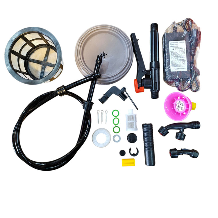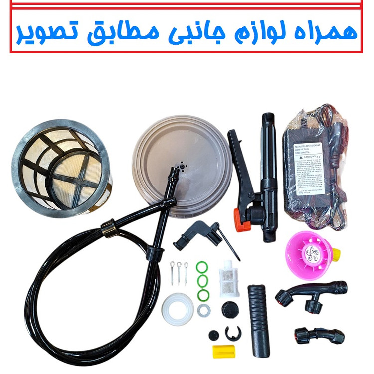 جنس بدنه پلیاتیلن طول شلنگ 1/5 ظرفیت مخزن 20 سیسی محدوه ظرفیت 10.1 تا 20 لیتر وزن 5000 گرم ویژگیهای سمپاش سمپاش دوشی، دوحالته، بادی و شارژی، باتری 12 ولت 8 آمپر لانس استیل دو تیکه با سر لانس دارای 3 مدل نازل، نازل آفتابگردان 4 یا 6 حالته کمربند از نوع طبی یک جفت عرق گیر درجه یک دستگاه دارای یک بدنه پلاستیکی بسیار مستحکم جنس پلاستیکی بدنه از بهترین مواد اولیه. P. P