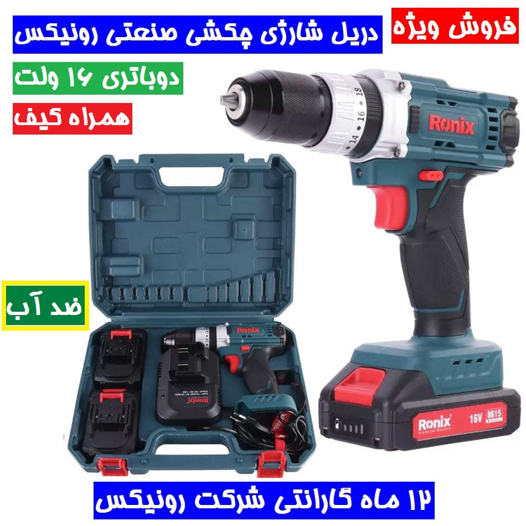 پیچگوشتی چکشی شارژی ترکمتردار دو سرعته 16 ولت رونیکس مدل 8615 با گارانتی