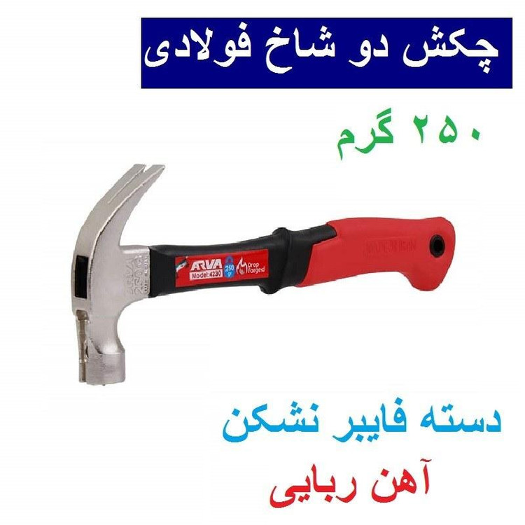 چکش دو شاخ فولادی آهنربایی دسته فایبر 250 گرمی آروا مدل 4230 اروا