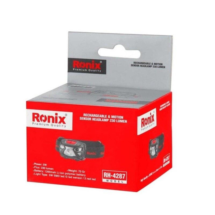 چراغ پیشانی شارژی 280 لومن 5 وات رونیکس با حسگر حرکتی و مدل RH-4287 مناسب دوچرخه سواری کمپینگ کوه نوردی آبیاری شبانه