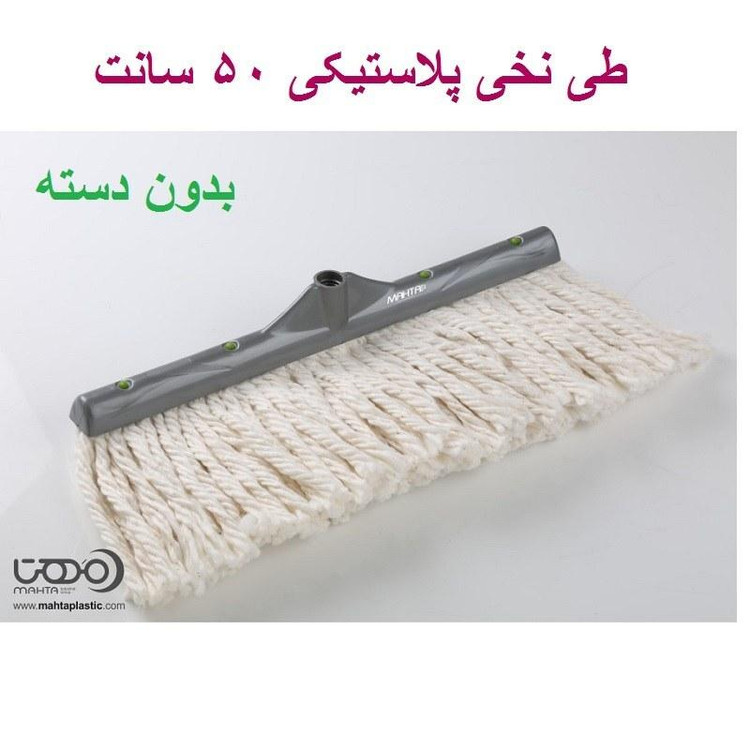 تی نخی 50 سانتی متر پلاستیکی تولید شده از نخ مقاوم با ترکیبی از پنبه و پلی استر، و با قابلیت جذب بالای آب از کف و سطوح . این محصول با بدنه ی پشت پلاستیکی از جنس پلی اتیلن تقویت شده بوده که دارای مقاومت بالایی می باشد. بدنه ی این تی با طراحی جدید و انحنایی که روی سطح آن وجود دارد از زیبایی قابل توجهی برخوردار می باشد. این محصول همچنین امکان اتصال به انواع دسته جارو های استاندارد بازار را دارد.