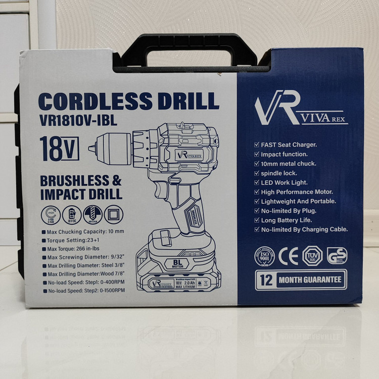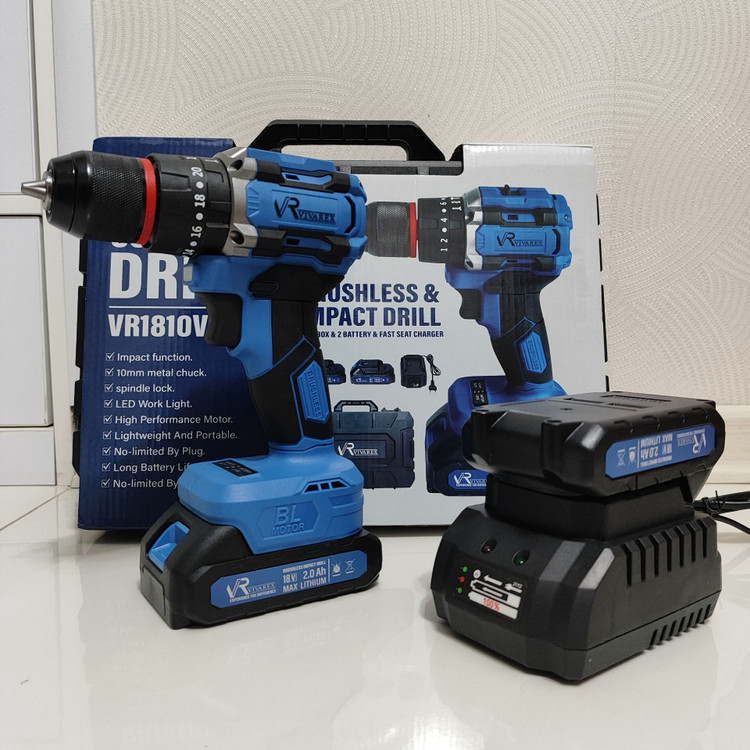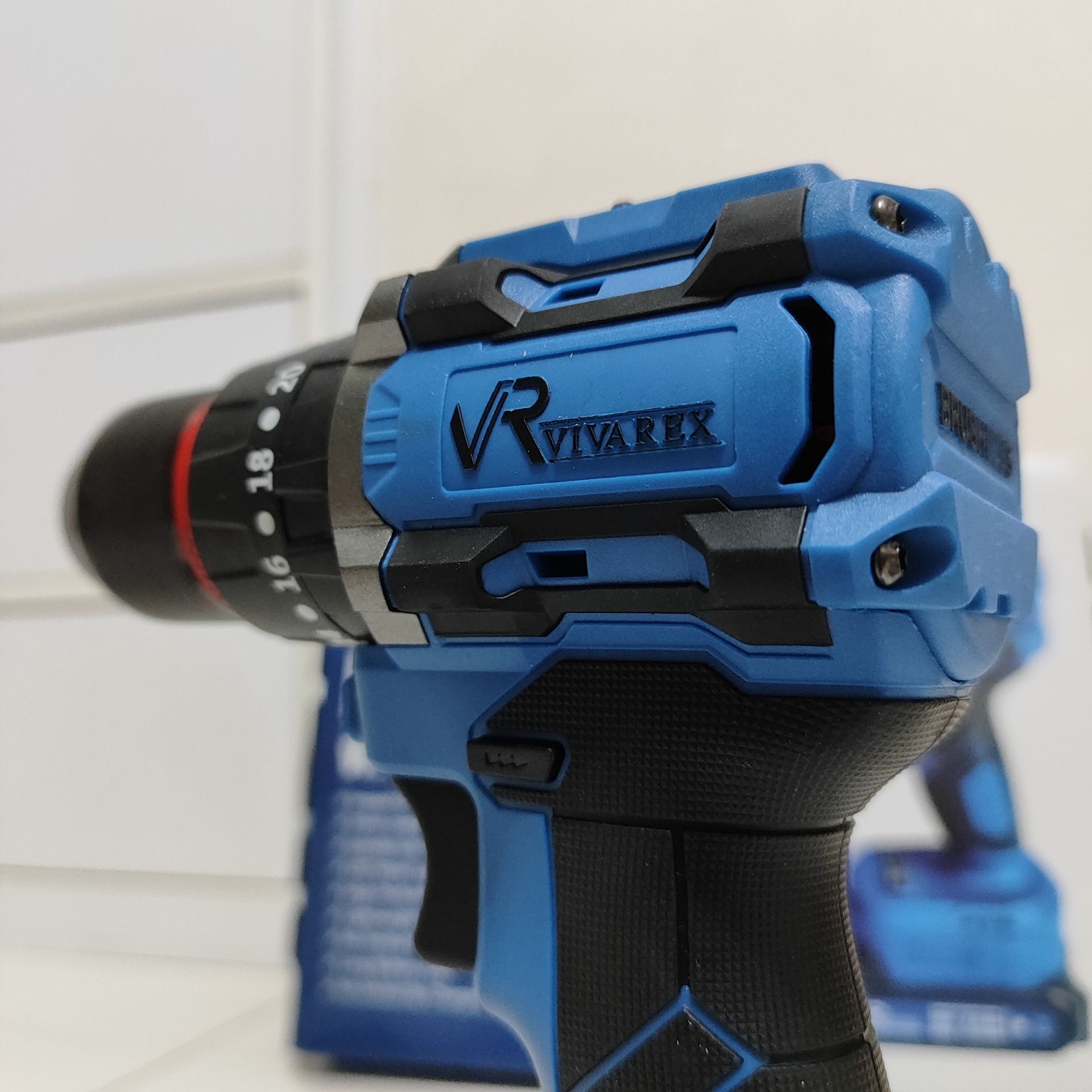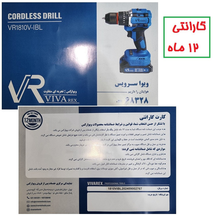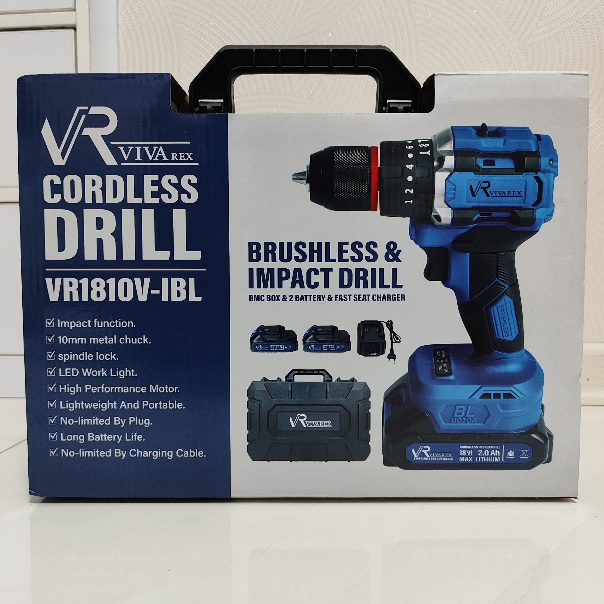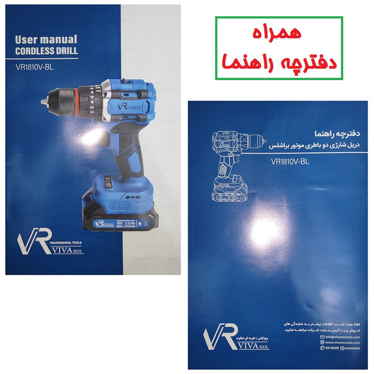 نام : دریل شارژی چکشی براشلس برند : ویوارکس (VIVAREX) مدل : VR1810V-1BL سایز سه نظام : 10 میلیمتر ولتاژ باتری : 18 ولت ظرفیت باتری : 2 آمپر ساعت کلید دیمردار گازی موتور پر قدرت براشلس کیف BMC و پایه شارژر کلید دو دور سرعتی و قدرتی دو عدد باطری 18 ولت 2 آمپر دکمه چپگرد و راستگرد چراغ نمایشگر شارژ باطری مجهز به کلاچ (ترکمتر) 24 حالته سه نظام فلزی 10 میلیمتر چراغ LED جهت کار در محیط های کم نور