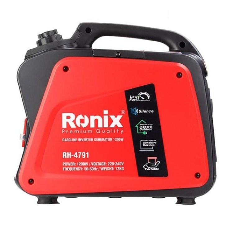 ویژگی ها -دارای موتور 4 زمانه با ظرفیت سیلندر60 سی سی و خروجی توان ماکزیمم1.2 کیلووات با عملکرد فوق العاده -کاهش 20 درصدی وزن نسبت به ژنراتورهای معمول که سبب اشغال فضای کمتر شده و حمل و نقل آن آسانتر میباشد. -تولید شکل موج سینوسی صاف و ولتاژ پایدار که از آسیب به وسیله های الکترونیکی حساس مانند موبایل ،لپ تاپ ،تلویزیون و ...جلوگیری میکند. -فوق العاده کم صدا با تولید صدای حداکثر 58 دسیبل -دارای یک خروجی 220 ولت AC و یک خروجی DC (12 ولت ) -مجهز به سوئیچ حالت اقتصادی که با تنظیم سرعت موتور بر حسب نوع بار متصل باعث کاهش مصرف سوخت و کاهش استهلاک ژنراتور میشود. -پایش دائمی اضافه بار و اتصال کوتاه مدار توسط واحد کنترل اینورتر و قطع سریع موتور در صورت بروز مشکل به منظور محافظت از اینورتر ژنراتور و وسیله های برقی متصل -دارای چراغ هشدار کمبود روغن برای جلوگیری از آسیب به موتور -مناسب برای تجهیزات الکترونیکی،کاروان ها،کمپینگ،وسیله های برقی خانگی و ابزارهای برقی کوچک صنعتی مشخصات کد محصول RH-4791 نوع اینورتر ژنراتور ولتاژ 220 ولت/50 هرتز حداکثر توان خروجی ژنراتور 1.2 کیلو وات نرخ توان خروجی 1 کیلو وات ضریب قدرت 1 خروجی DC 12 ولت/4 آمپر نوع موتور موتور چهار زمانه بنزینی /هوا خنک/OHV قطر*ارتفاع(میلیمتر) 44*39.5 حجم موتور 60 سی سی حداکثر توان خروجی موتور 1.3کیلو وات/5500 دور بر دقیقه سوخت بنزین بدون سرب ظرفیت مخزن سوخت 3 لیتر مدت زمان کارکرد 4.4 ساعت نوع روغن SAE 10W30 ظرفیت مخزن روغن 0.27 لیتر سیستم جرقهزنی C.D.I. نوع استارت دستی(هندلی) نوع شمع A5RTC (TORCH) ابعاد محصول 448*236*392 ابعاد بسته بندی 480*255*425 وزن خالص 12کیلوگرم وزن ناخالص 15کیلو گرم نوع بسته بندی جعبه دو رنگ رونیکس متعلقات کابل اتصال DC،پیچگوشتی،آچار شمع
