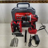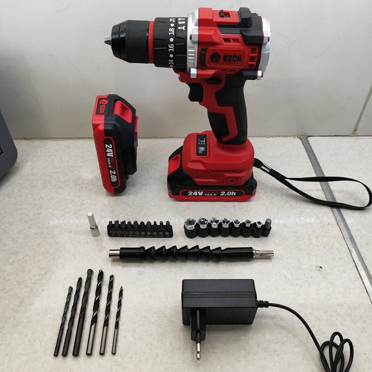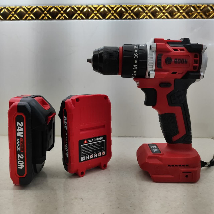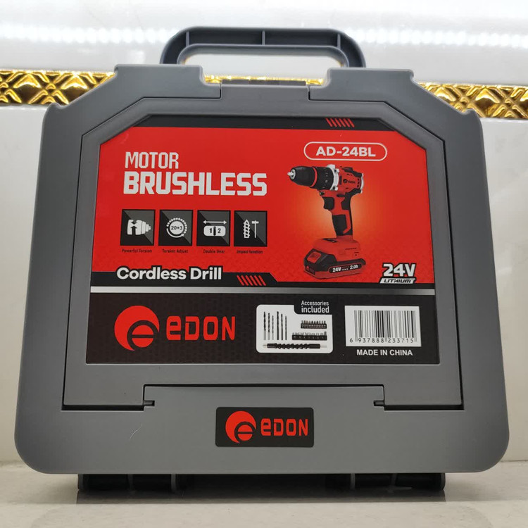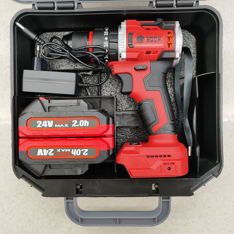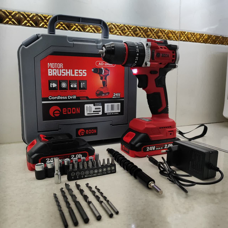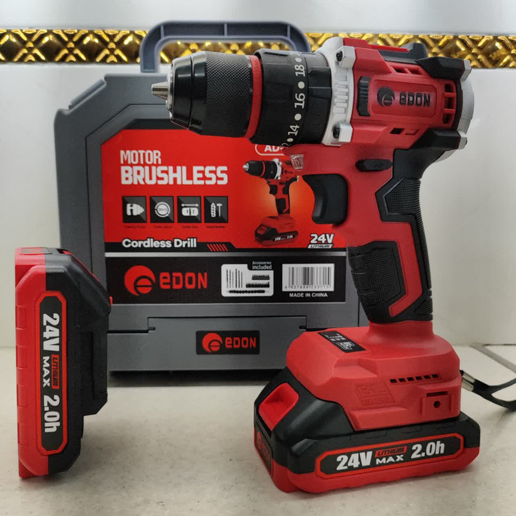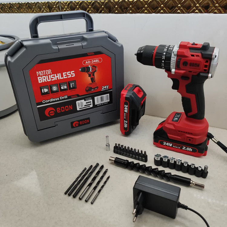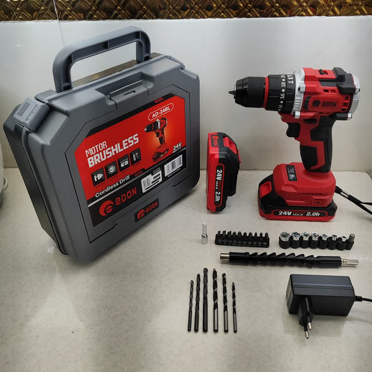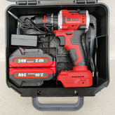 دریل شارژی 24 ولت دوباتری موتور براشلس طرح میلواکی ادون پیچگوشتی شارژی سه نظام فلزی همراه کیف و لوازم