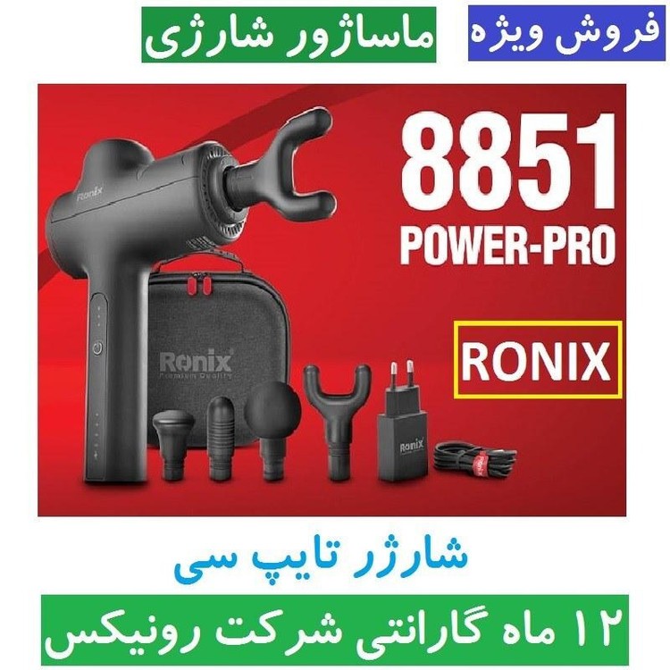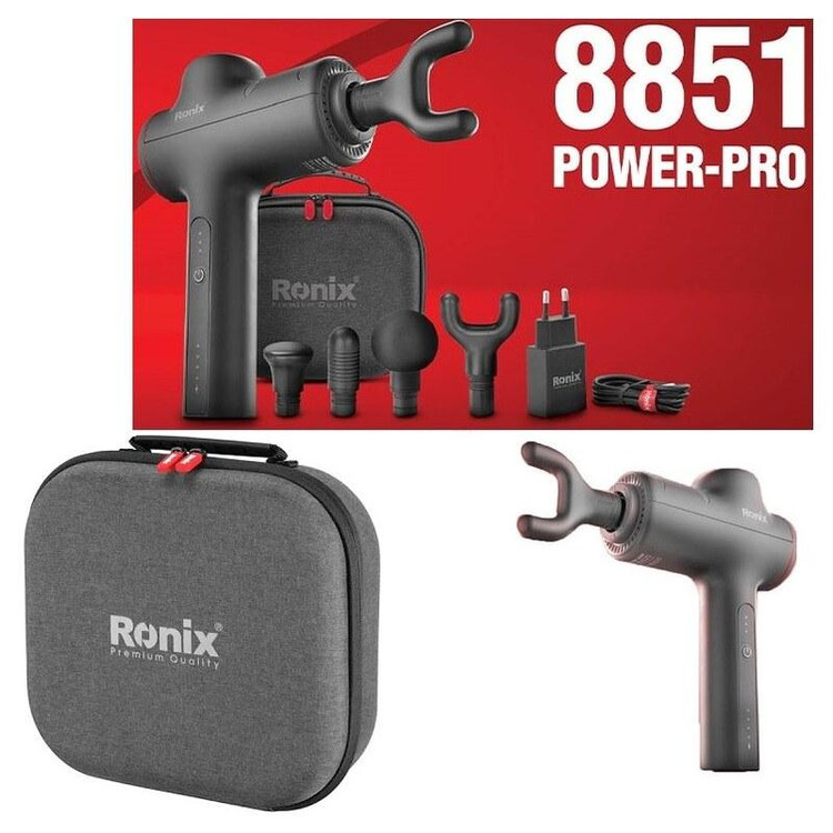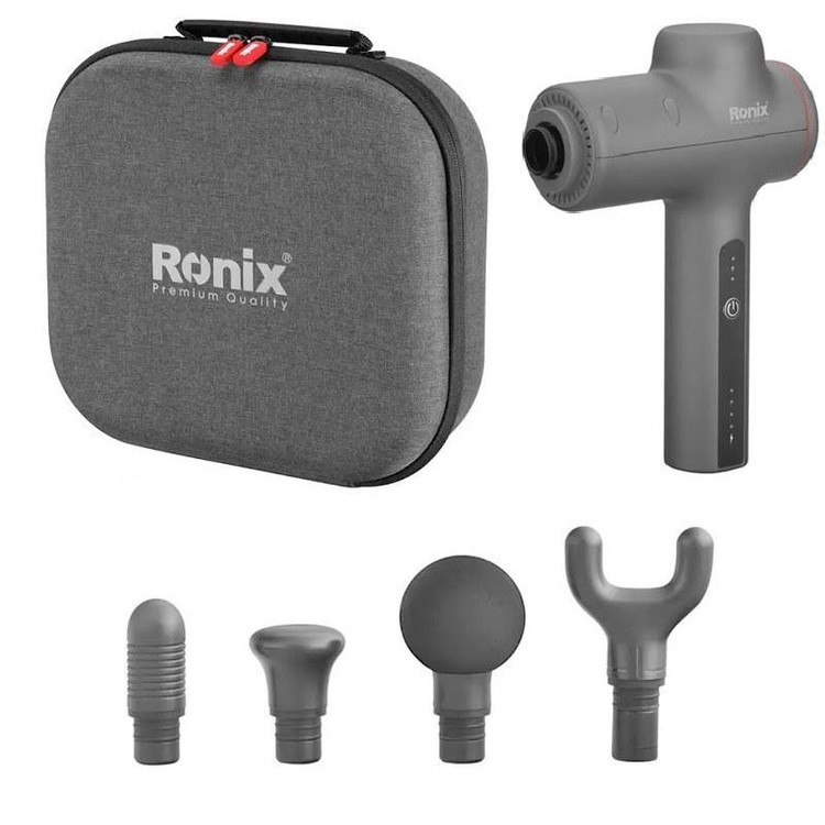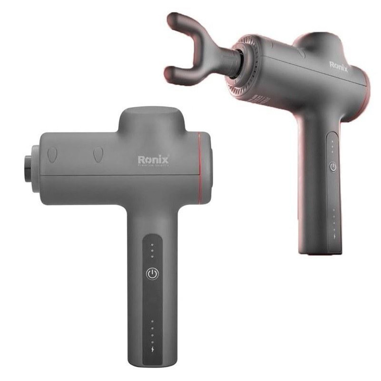 متعلقات چهار عدد سری – دفترچه راهنما – کابل شارژر – شارژر Type C محصولی از RONIX سازنده ابزارهای با کیفیت شارژی ماساژور تفنگی با قدرت بالای انتقال ضربه سری Power-Pro مجهز به موتور بدون ذغال (براشلس) با 4 برابر نیروی بیشتر مناسب ماساژ بعد از فعالیت، پیاده روی و خستگی بعد از کار تنظیم 3 حالته سرعت 1600 / 2200 / 2800 دور در دقیقه فوق العاده کم صدا، خوش دست و دارای 4 نوع سری متنوع پخش ضربه یکنواخت محور با دامنه حرکتی 10 میلی متر دارای باتری 1600 میلی آمپری + کابل، شارژر همراه و کیف قابلیت کار دهی بهینه از 3 تا 7 ساعت با یک بار شارژ باتری تضمین اصالت و سلامت کالا به همراه گارانتی رسمی