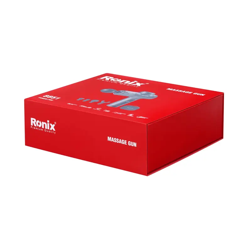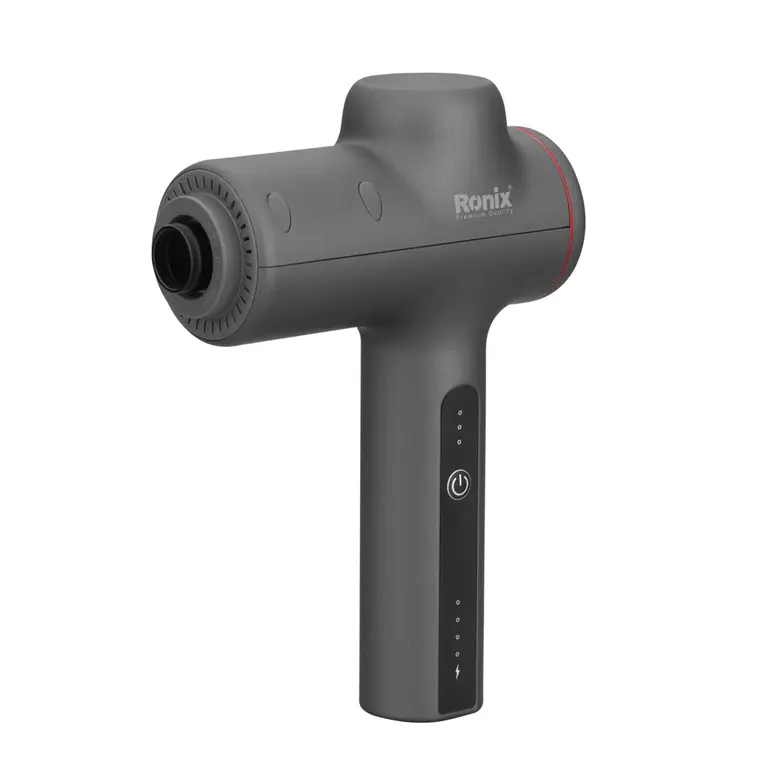 متعلقات چهار عدد سری – دفترچه راهنما – کابل شارژر – شارژر Type C محصولی از RONIX سازنده ابزارهای با کیفیت شارژی ماساژور تفنگی با قدرت بالای انتقال ضربه سری Power-Pro مجهز به موتور بدون ذغال (براشلس) با 4 برابر نیروی بیشتر مناسب ماساژ بعد از فعالیت، پیاده روی و خستگی بعد از کار تنظیم 3 حالته سرعت 1600 / 2200 / 2800 دور در دقیقه فوق العاده کم صدا، خوش دست و دارای 4 نوع سری متنوع پخش ضربه یکنواخت محور با دامنه حرکتی 10 میلی متر دارای باتری 1600 میلی آمپری + کابل، شارژر همراه و کیف قابلیت کار دهی بهینه از 3 تا 7 ساعت با یک بار شارژ باتری تضمین اصالت و سلامت کالا به همراه گارانتی رسمی
