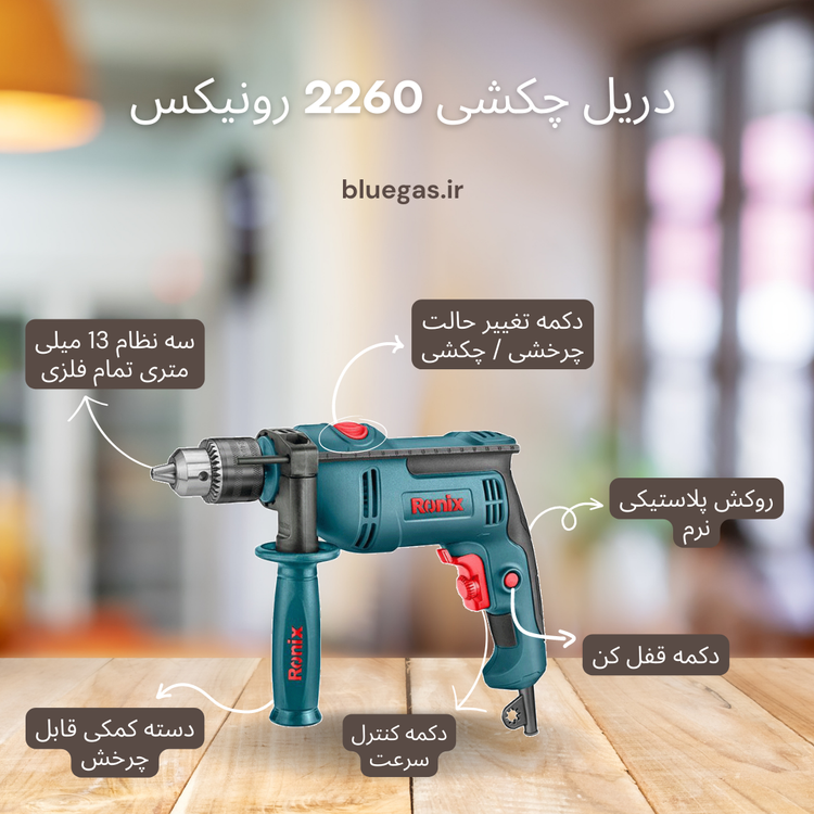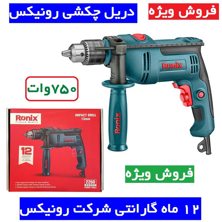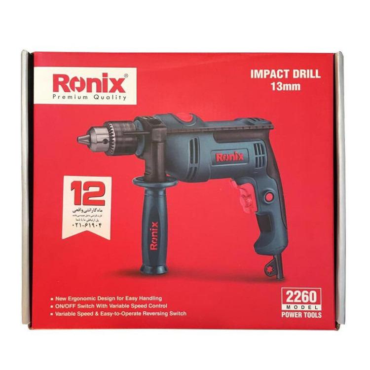 دریل برقی چکشی 13 میلیمتری آچاری 750 وات 3000 دور رونیکس مدل 2260 همراه کارت گارانتی شرکت رونیکس