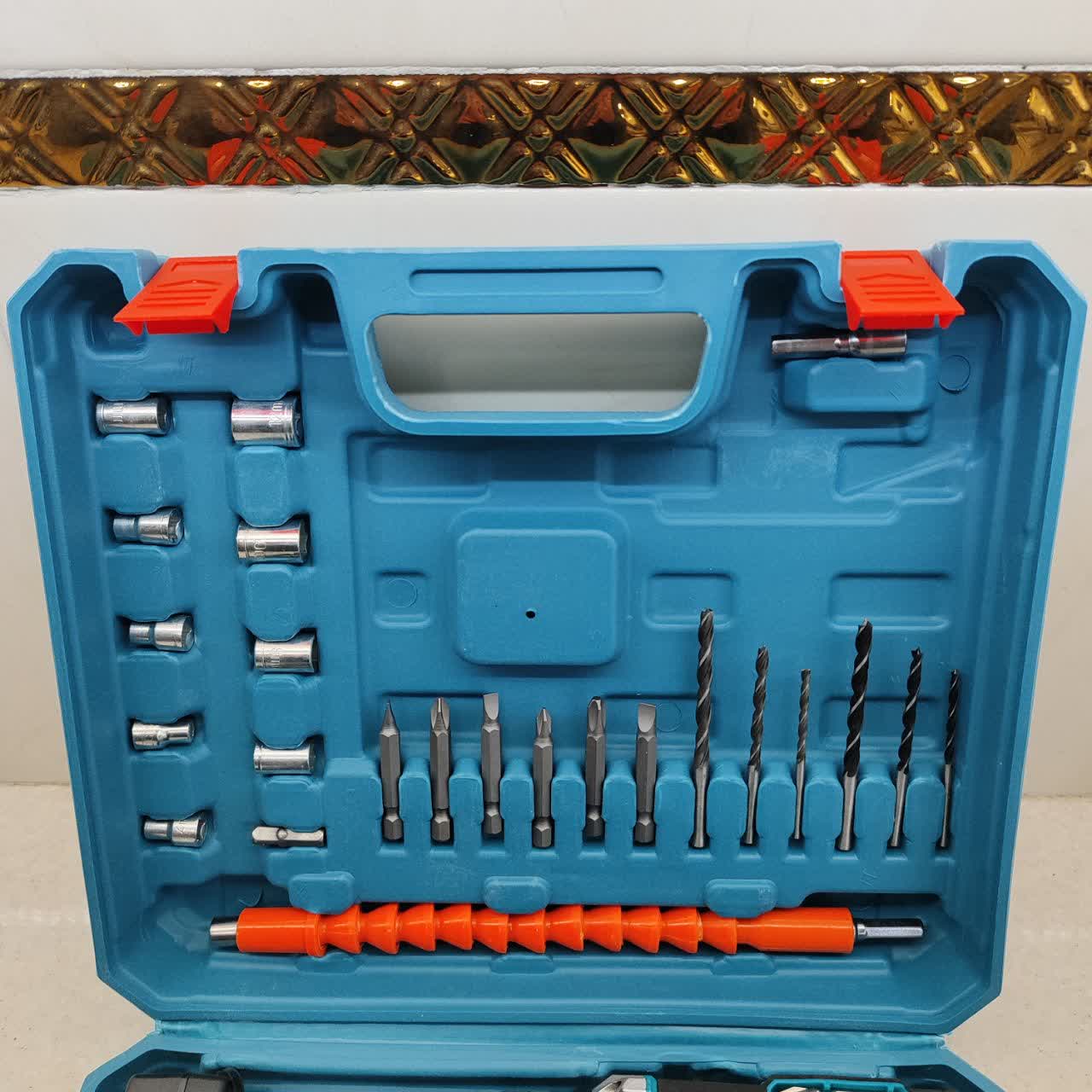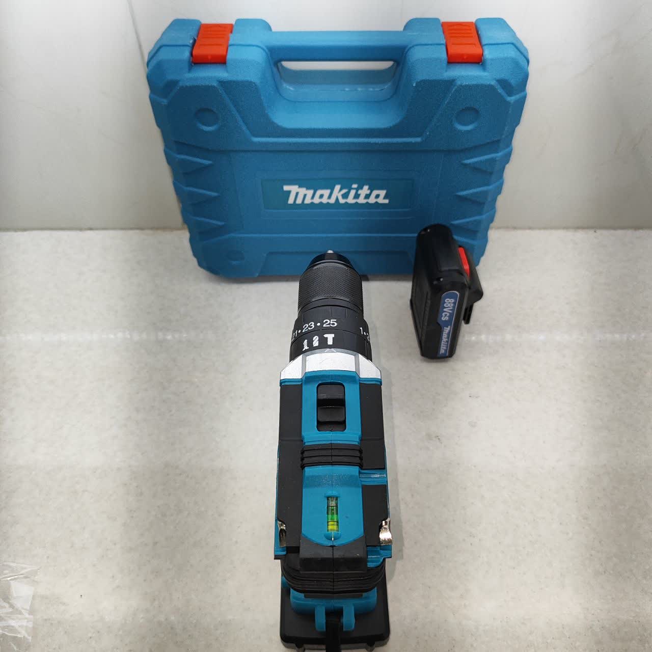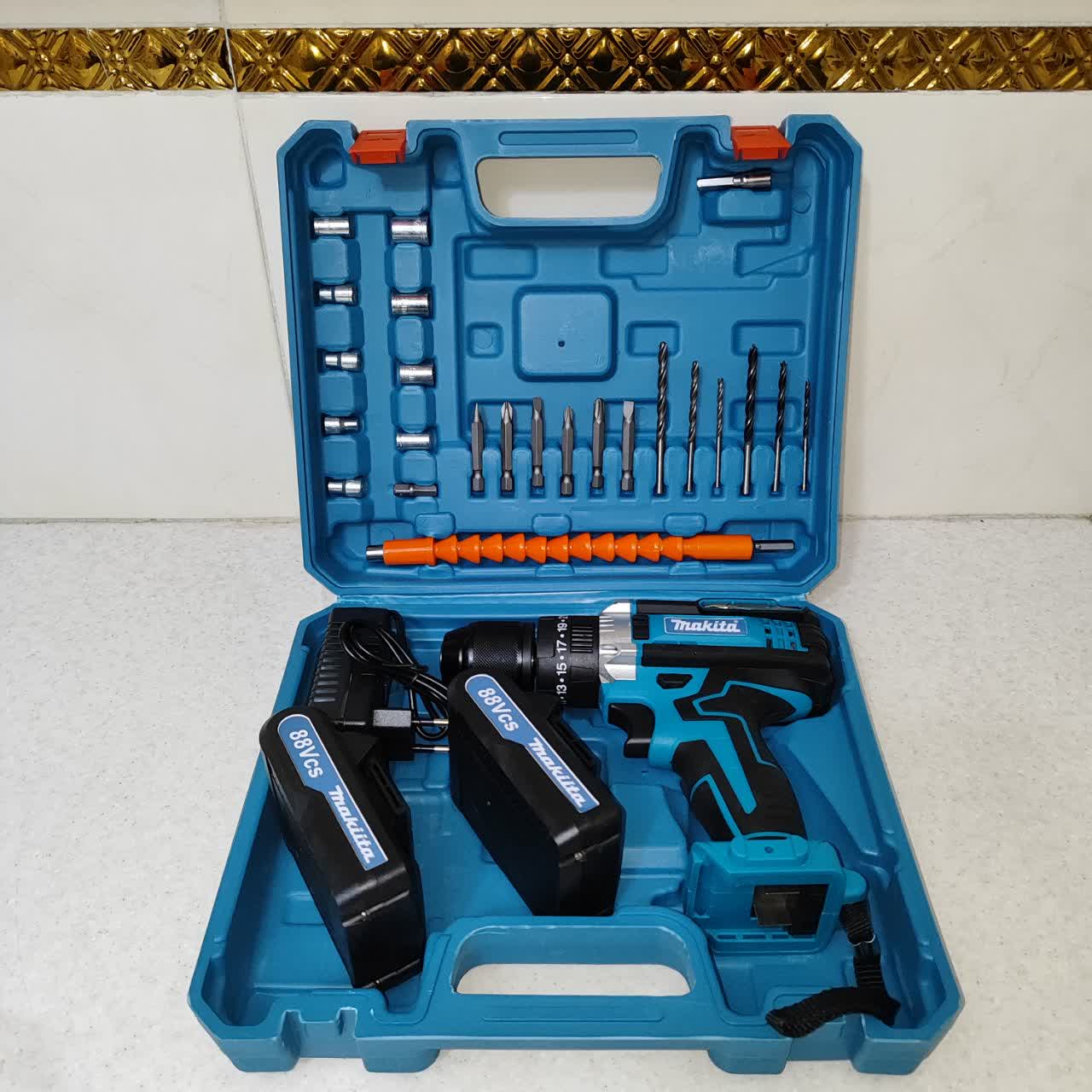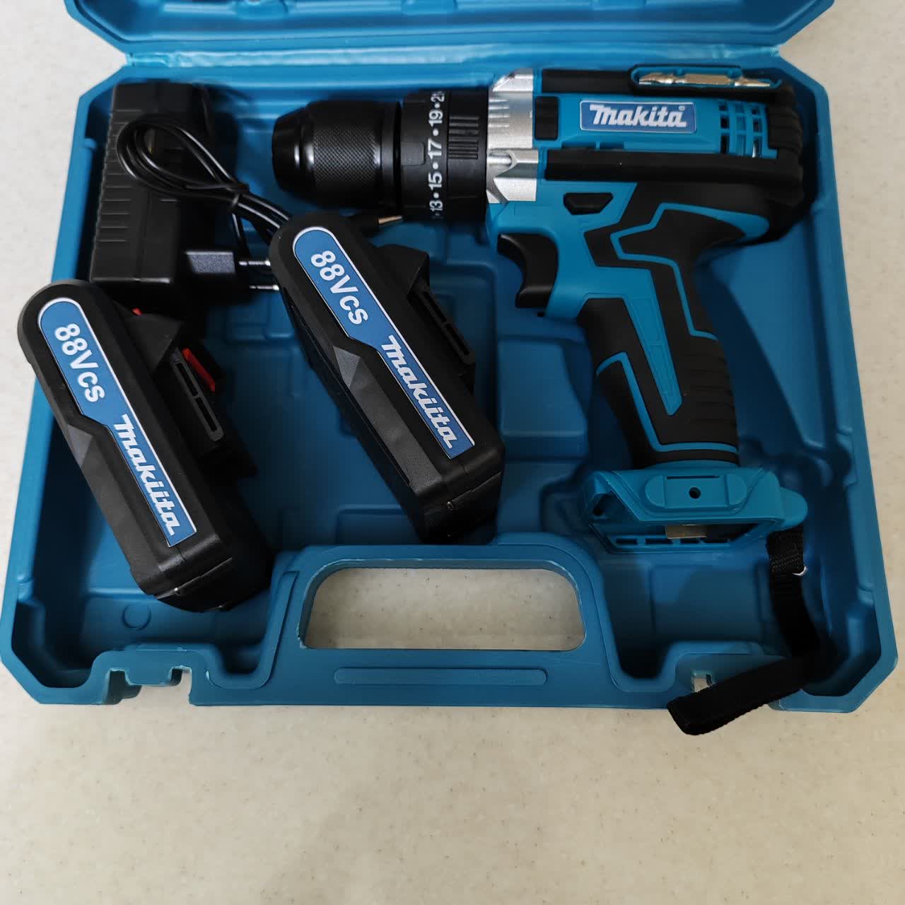 دریل شارژی چکشی 88 ولت ماکیتا دوباتری سه نظام فلزی دارای تراز پیچگوشتی شارژی 88 ولت ماکیتا با کیف و لوازم جانبی کامل