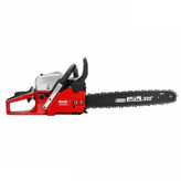 ویژگیها: - مجهز به موتور دو زمانه قدرتمند 1800 واتی دو زمانه با حجم 45 سیسی - دارای سیستم روغن کاری اتوماتیک زنجیر که از اصطکاک میان زنجیر و ساطور جلوگیری کرده و عملکردی آسانتر و روانتر ارائه میدهد - مجهز به سیستم ضد لرزش دوبل که کار با دستگاه را آسانتر میکند - دارای مکانیزم منحصربفرد ترمز اضطراری برای کاهش خطر در حین عملیات برش - مجهز به استارت سریع جهت سهولت کاربری - دارای سیستم احتراق جدید که باعث عملکرد هرچه روانتر دستگاه میشود - طراحی ویژه اگزوز باعث کاهش مصرف سوخت و به حداقل رساندن میزان انتشار دود میشود - طراحی جدید در سیستم کلاچ منجر به عملکرد بهتر و کارایی بالاتر میشود - مجهز به زنجیر و ساطور OREGON ساخت آمریکا - مجهز به کاربراتور باکیفیت ساخت ژاپن برای طول عمر بیشتر و عملکرد موثرتر مشخصات کد محصول 4645Pro توان600وات 1800 وات طول ساطوری برش 45 سانتیمتر وزن 5.1 کیلوگرم ظرفیت مخزن سوخت 550 میلیلیتر ظرفیت موتور 45 سیسی نسبت روغن به بنزین بنزین بدون سرب با نسبت 1 به 40 کاربراتور دیافراگم سرعت در حالت آزاد 3000±400 RPM سیستم احتراق سیستم C.D.I با عملکرد زمانی پیشرفته سیستم روغن کاری پمپ مکانیکی با قابلیت تنظیم نوع بسته بندی جعبه رنگی رونیکس متعلقات زنجیره BPX اورگان 21، ساطور