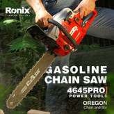 اره موتوری اره درخت بر بنزینی 1800 وات رونیکس زنجیر و تیغه امریکایی کاربراتور ژاپنی سری Pro مدل 4645pro با لوازم کامل