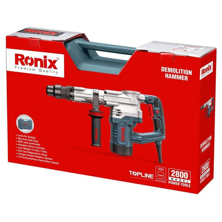 ویژگیها: - موتور مقاوم 1300 واتی توان ضربه 20 ژول را به ارمغان می آورد که برای عملیات تخریب کاملا مناسب است. - طراحی ساده و جمع و جور این ابزار را برای انجام عملیات تخریب آجر، سنگ و بتن ایدهآل میکند. - استفاده از سیستم قفل کن پیشرفته قلمگیر 5 شیار SDS Max - مجهز به سیستم روغنکاری پیشرفته که باعث افزایش طول عمر دستگاه و بالا رفتن دوام آن میشود. - محفظه منیزیومی ریختهگری شده علاوه بر وزن سبک به خنکشدن دستگاه و افزایش توان آن کمک میکند. - دسته جانبی این دستگاه قدرت نگهداری بالایی را برای انجام کار در ساعتهای متوالی در اختیار کاربر قرار میدهد. - سیستم قفل کن خودکار از آرماتور دستگاه در هنگام انجام عملیات مداوم محافظت میکند. - دارای سلیندر 40 میلی متری مشخصات کد محصول 2800 نوع سهنظام SDS Max توان600وات 1300 وات قدرت ضربه 20 ژول فرکانس50-60هرتز 50-60 هرتز حداکثر تعداد ضربه در حالت آزاد 2400 ضربه در دقیقه ولتاژ 220-240 ولت وزن 7.5 کیلوگرم نوع بسته بندی BMC متعلقات دسته جانبی طراحی شده توسط رونیکس، ظرف گریس، دستمال تنظیف، قلم نوک تیز 350×250 میلی متر، قلم نوک تخت 350×250 میلیمتر