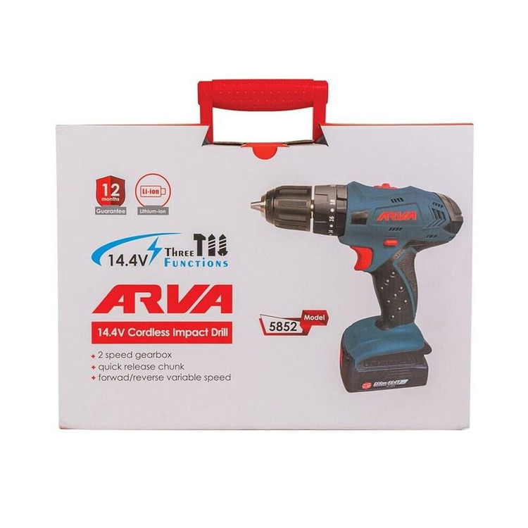 دریل پیچ گوشتی شارژی چکشی آروا 14.4 ولت دوباتری مدل 5852 اروا باکارت گارانتی شرکت آروا